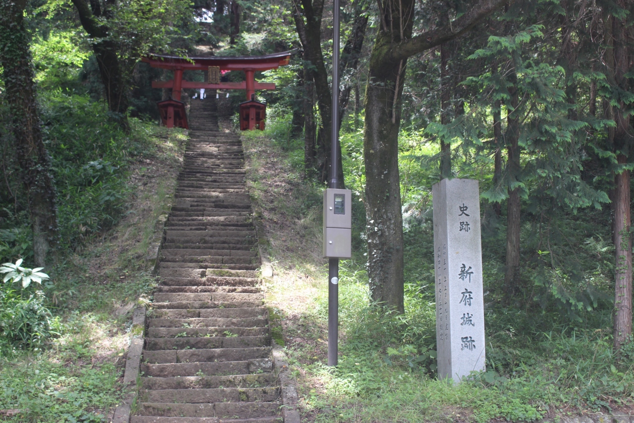 白旗神社があり、そこから石段を登って行ったところにささやかな石塔があります。