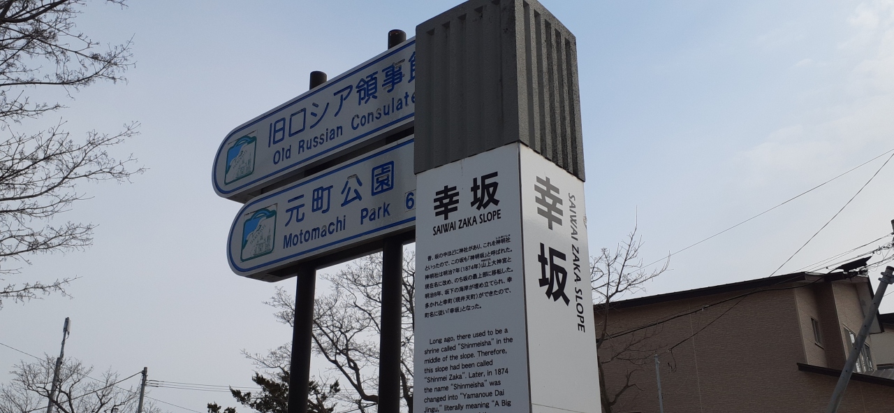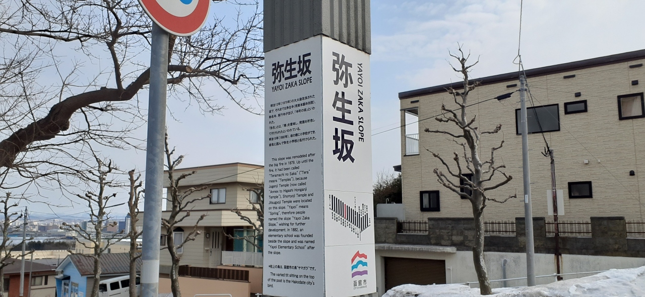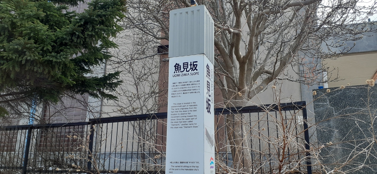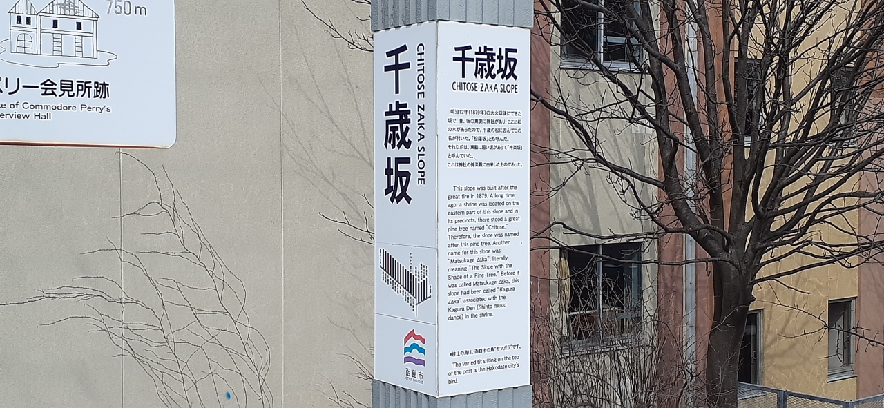 市電の通りと函館公会堂への基坂の交差点にあります。