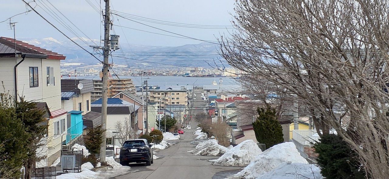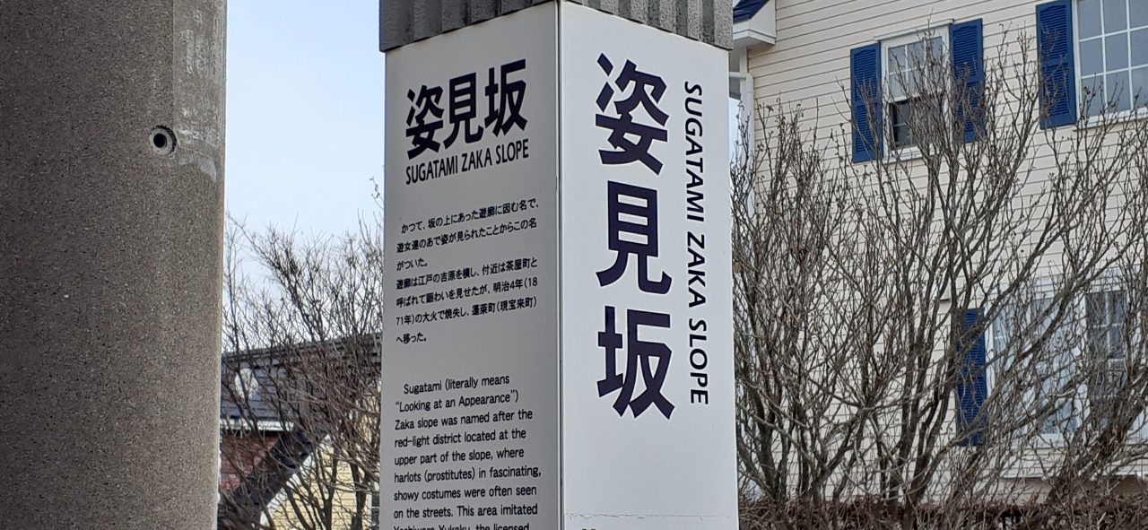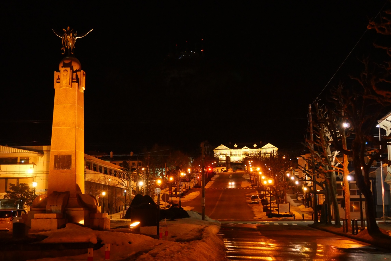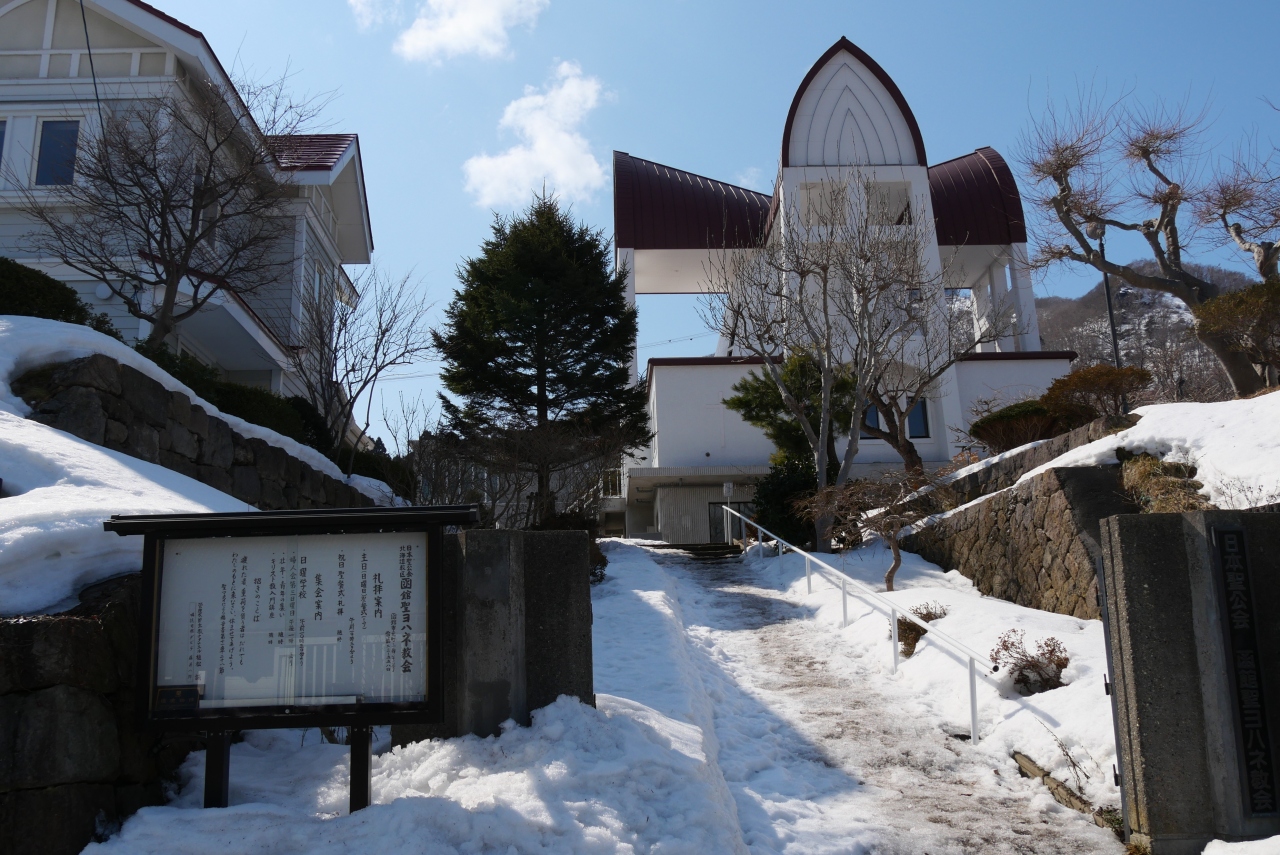 市電の通りと函館公会堂への基坂の交差点にあります。