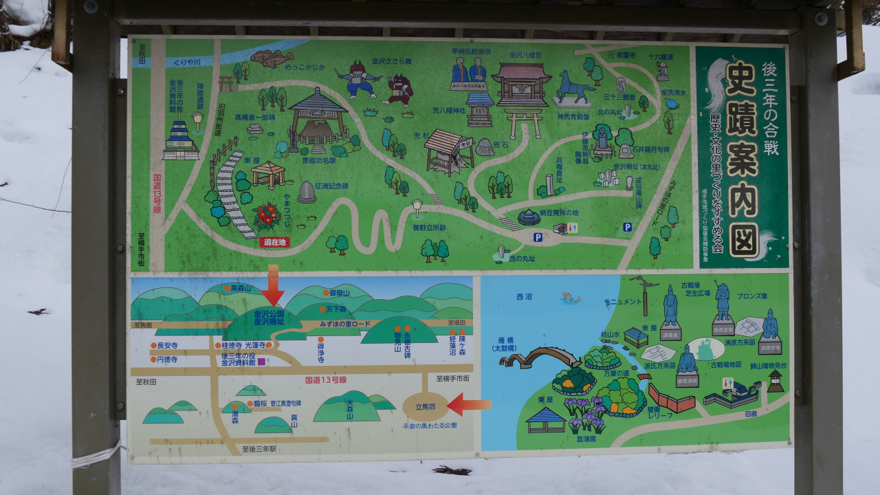 金沢柵跡までは歩いて5分ほどで行けます。