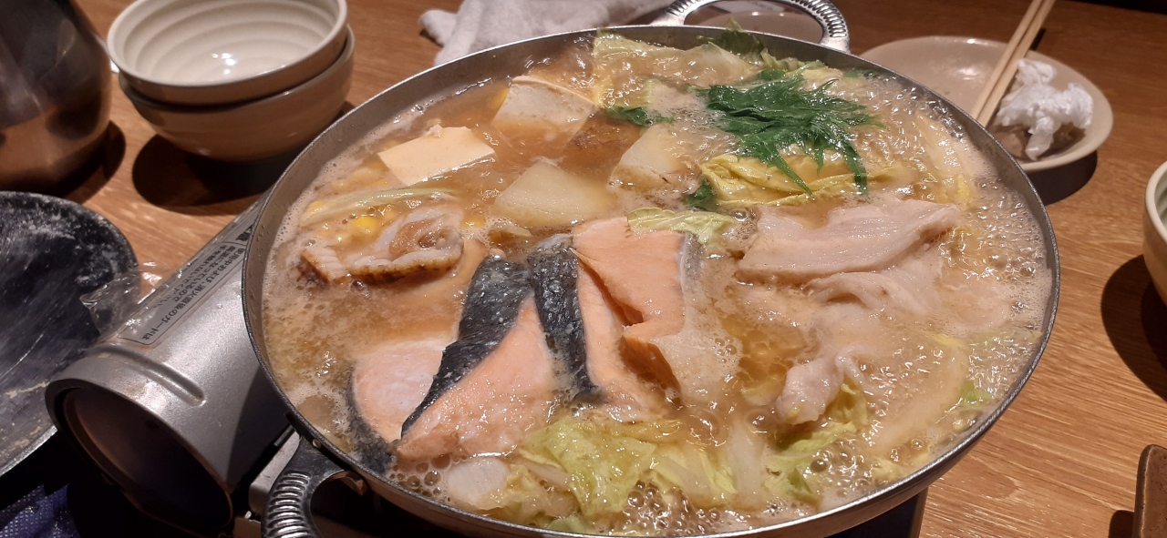 タイやまぐろの刺身、鮭やホタテの入った石狩鍋、じゃがいものバター焼きなどいかにも北海道らしい食べ物を満喫できました。