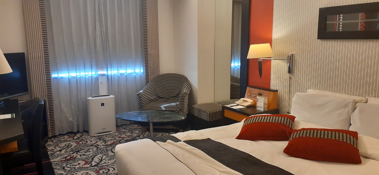 部屋はやや古く、エアコンは集中管理、電源コンセントも少なかったですが、部屋は広く、快適に過ごせます。