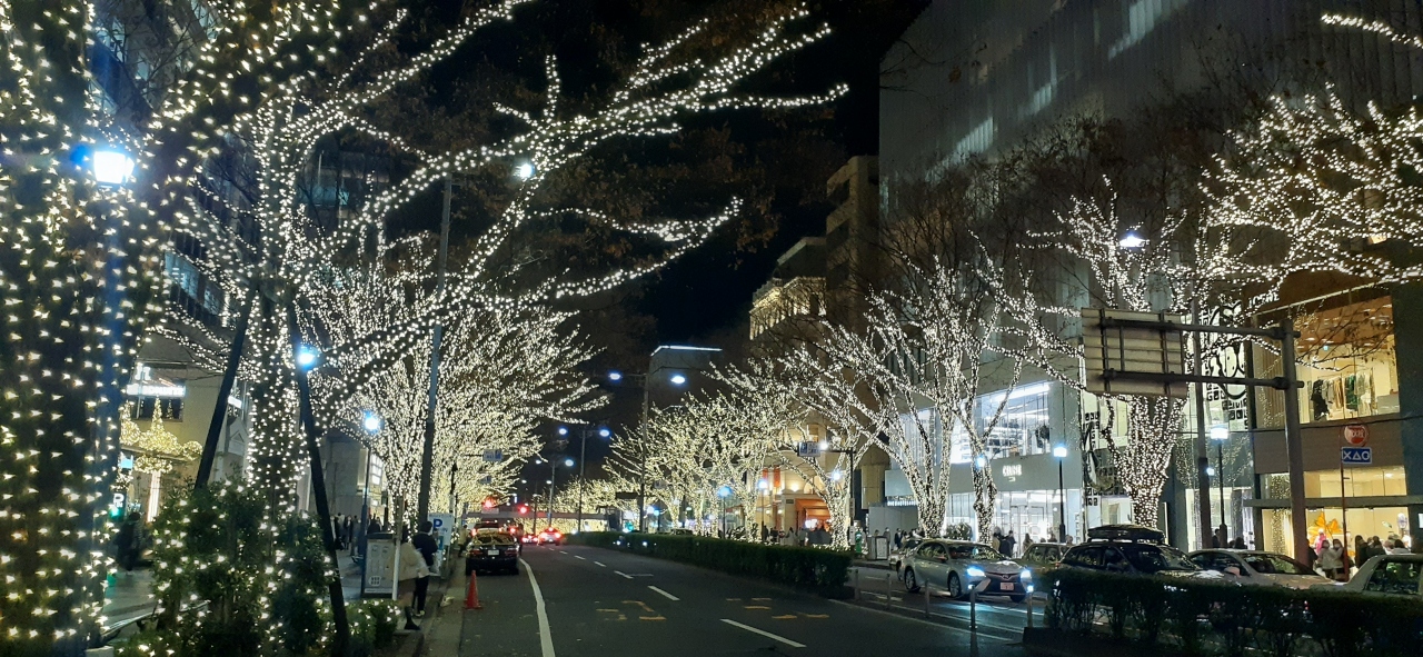 表参道のイルミネーションはJR原宿駅からメトロ表参道まで約1キロですが、表参道ヒルズの前が一番イルミネーションがきれいです。