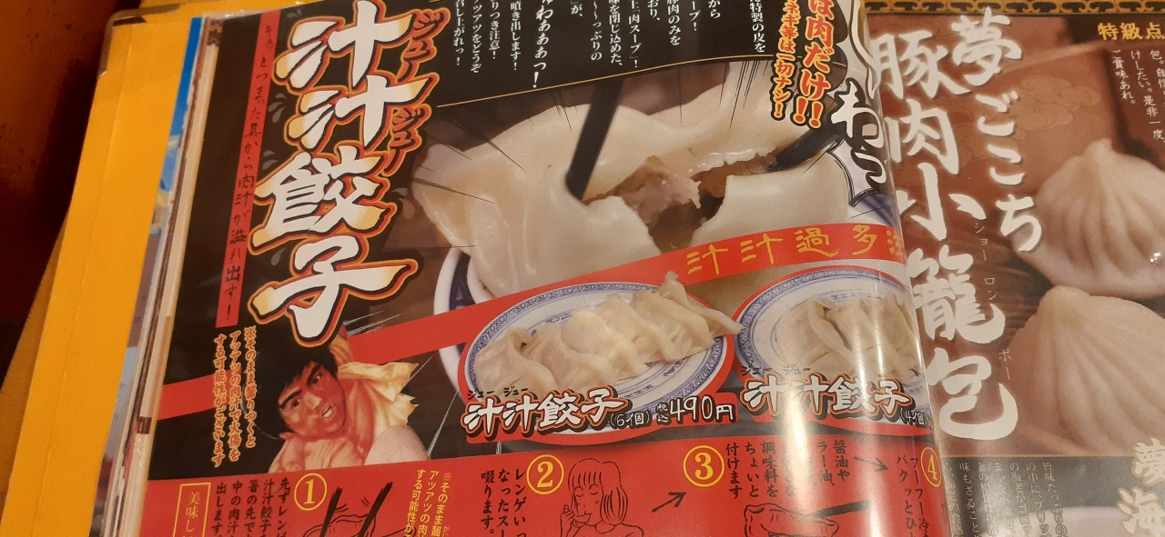 スープの入った餃子でくせになりそうな味。