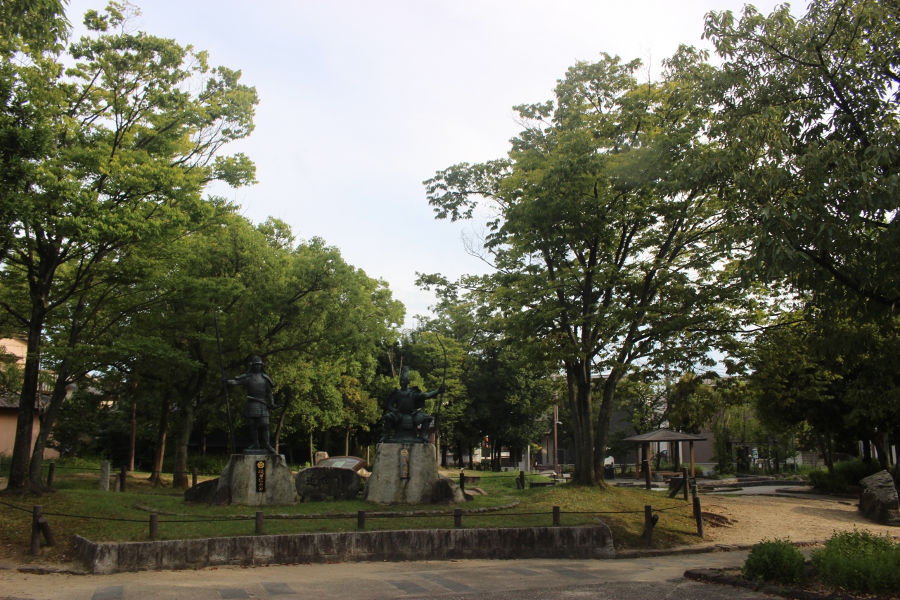 ごく普通の住宅街の中の公園で、織田信長と今川義元の銅像がありました。