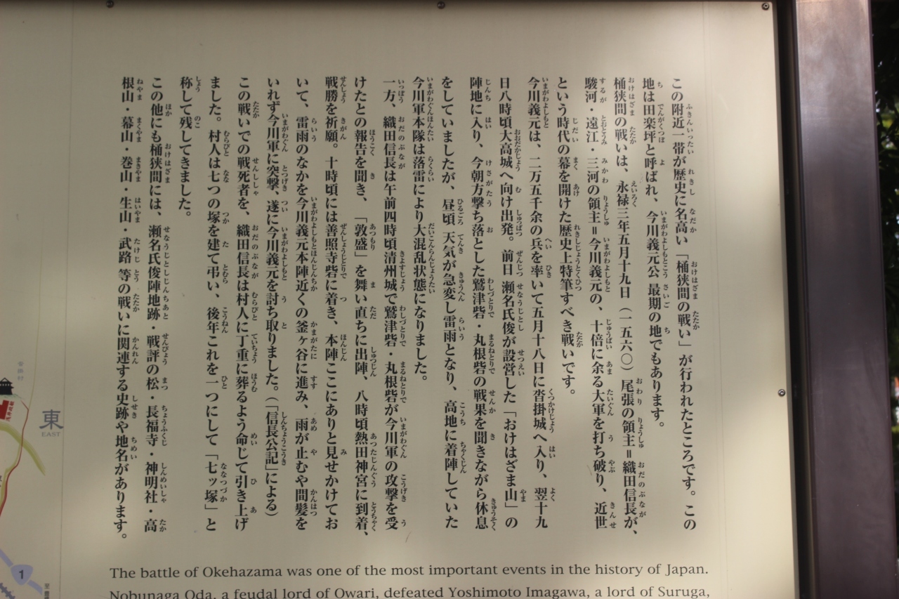 そのほかこの一帯は桶狭間合戦ゆかりの場所が多くあるので、この案内所でいろいろ聞くといいでしょう。- 旅行時期