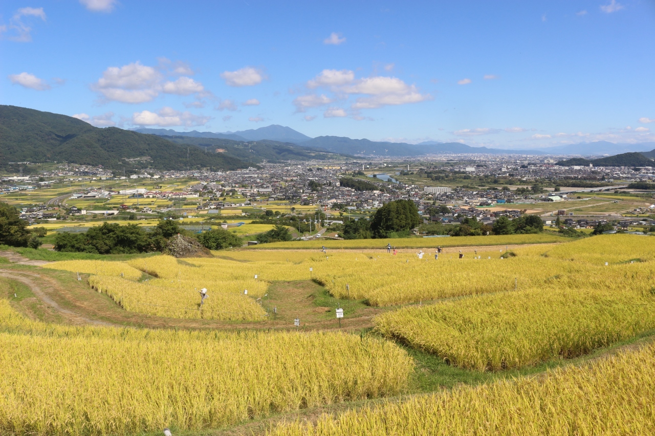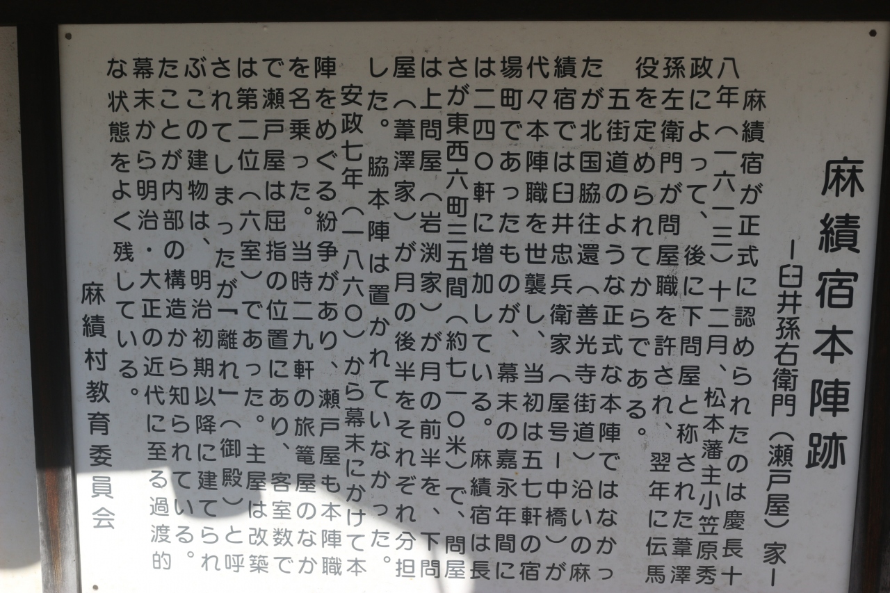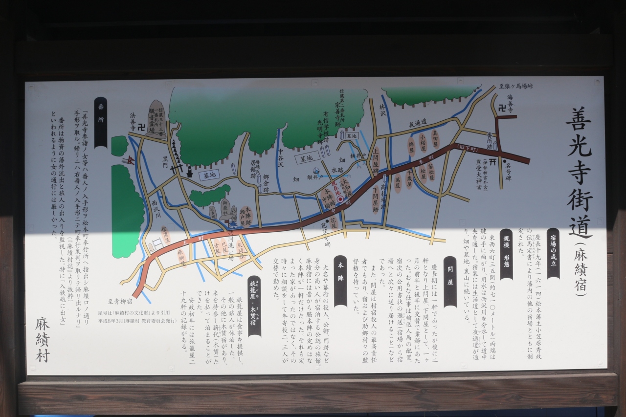 JR篠ノ井線・聖高原駅で途中下車。駅からまっすぐの道を歩いていくと宿場町の説明板と地図があります。