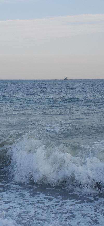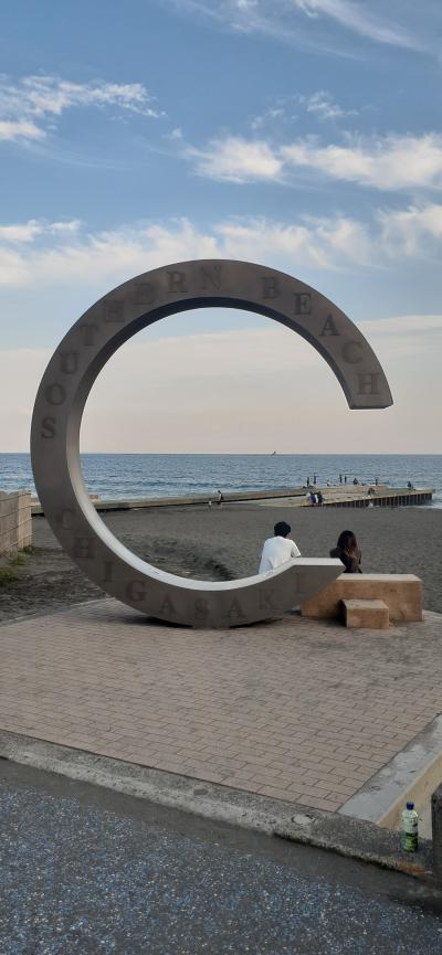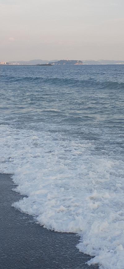海岸からは正面にはバスの名前にもなっている烏帽子岩、左手には江の島が見えました。