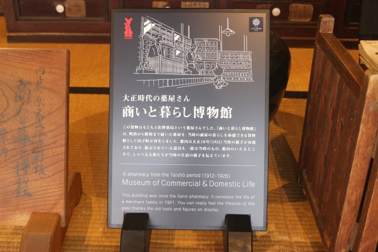 店は薬局を再現しており声の出る人形があり、また中に入ると朝食風景が再現されていました。