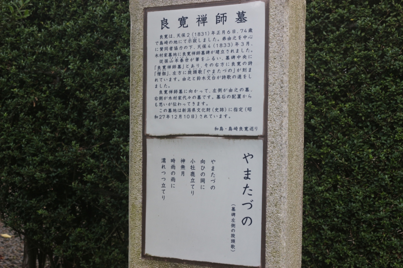 近くには木村家の菩提寺・隆泉寺があり、良寛の墓もありました。- 旅行時期