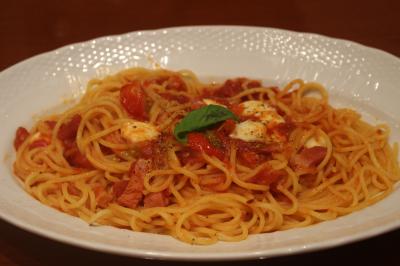 トマトソースのパスタを頼みましたが、腰の強い麺にトマトのソースがよくなじんでいました。