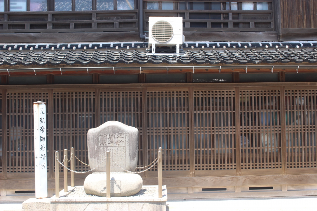 明治以来の有形文化財の駅舎のあるJR御来屋駅から御来屋の集落へ歩いていくと、まず元弘帝(後醍醐天皇)の船着場の石碑があります。
