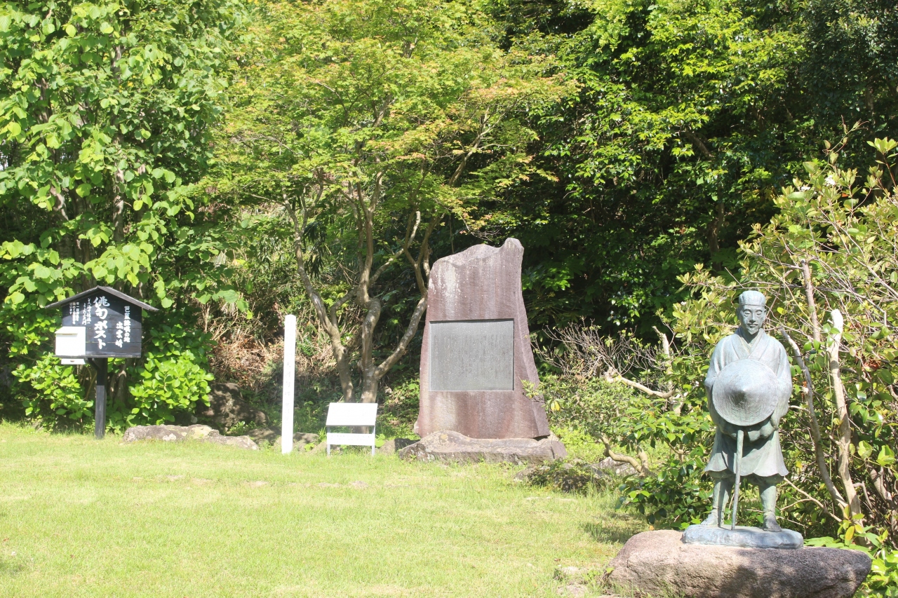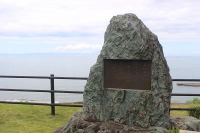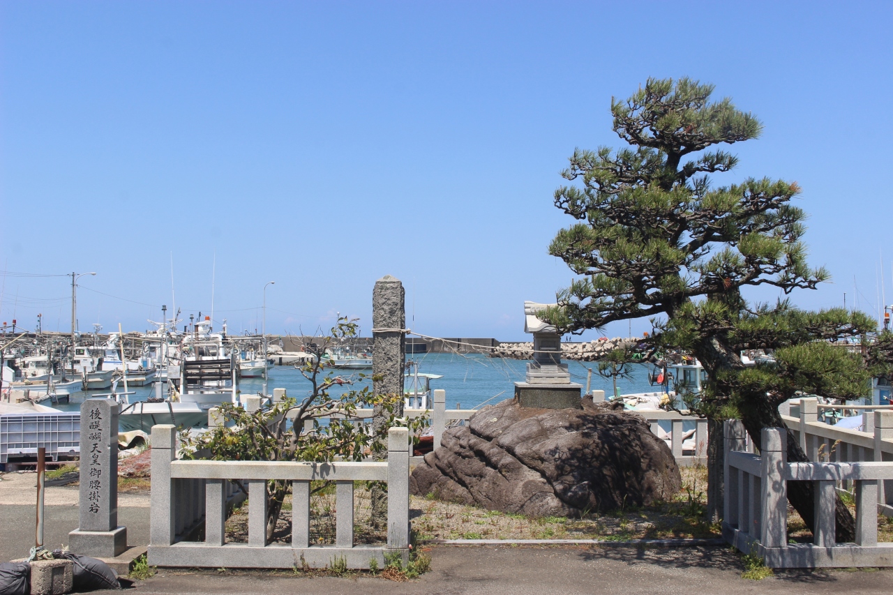 そこから港に出たところに「御腰掛の岩」の石碑があります。