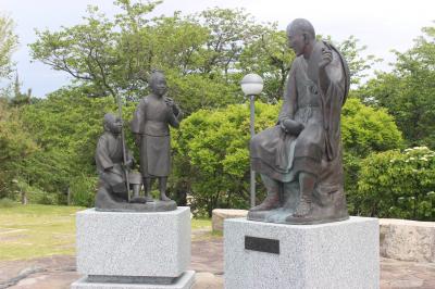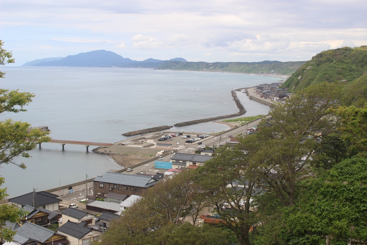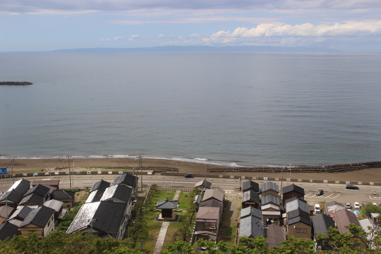 良寛記念館の隣にあります。出雲崎の街並み、日本海、佐渡が見えます