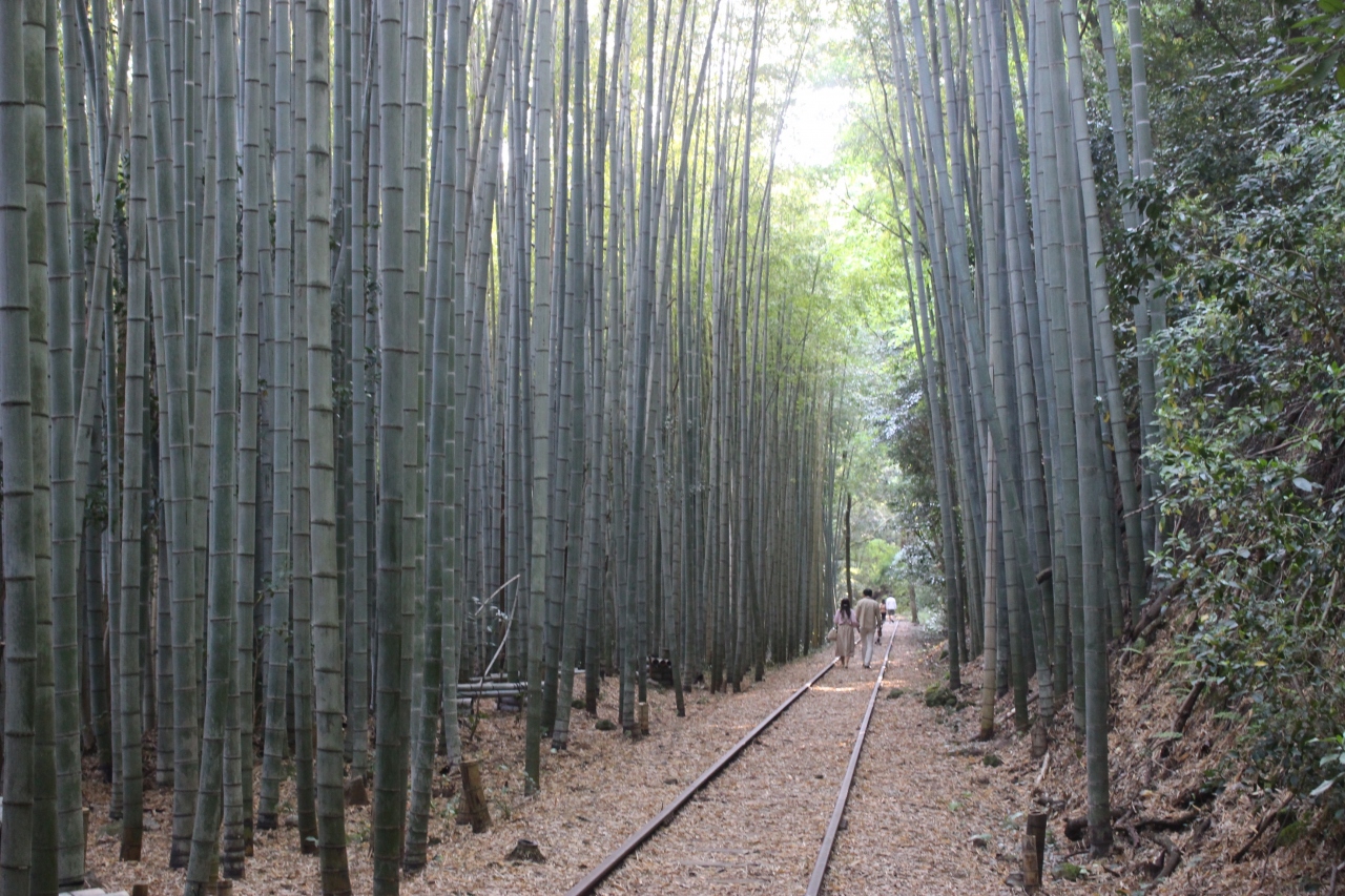 駅からしばらく線路を歩いていくと見事な竹林もあります。