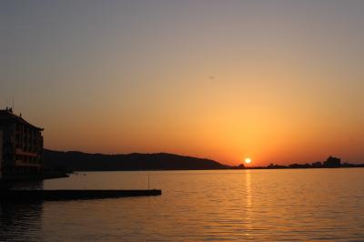 宿舎の前から見た東郷湖畔の夕日がとてもきれいな場所でした。
