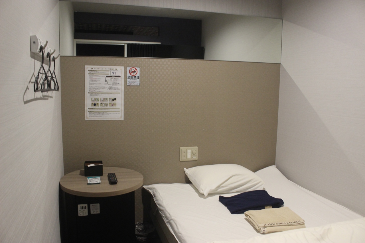 カプセルホテルのような簡易な部屋ですが、寝るだけなら十分快適。