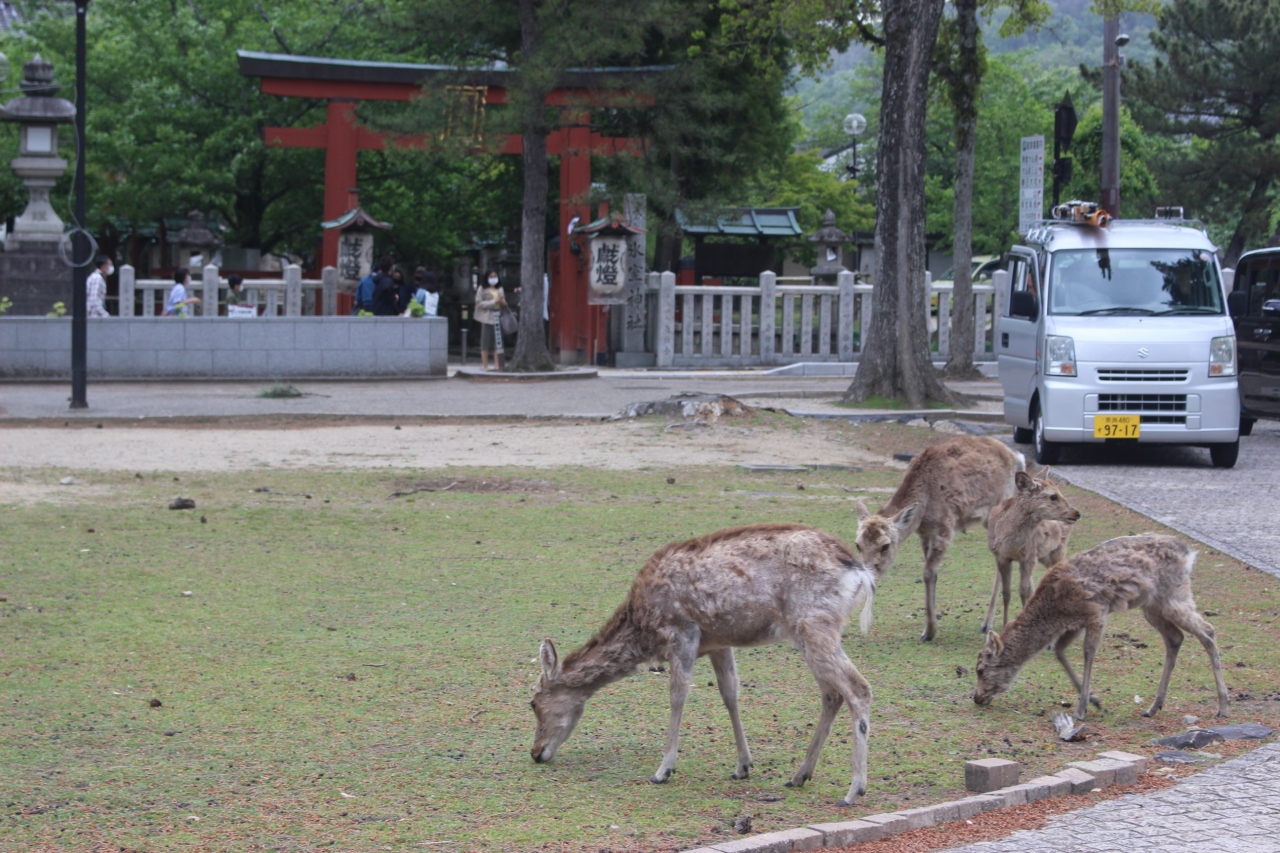 奈良中心部、東大寺、興福寺などを含む一帯。野生のシカがいます