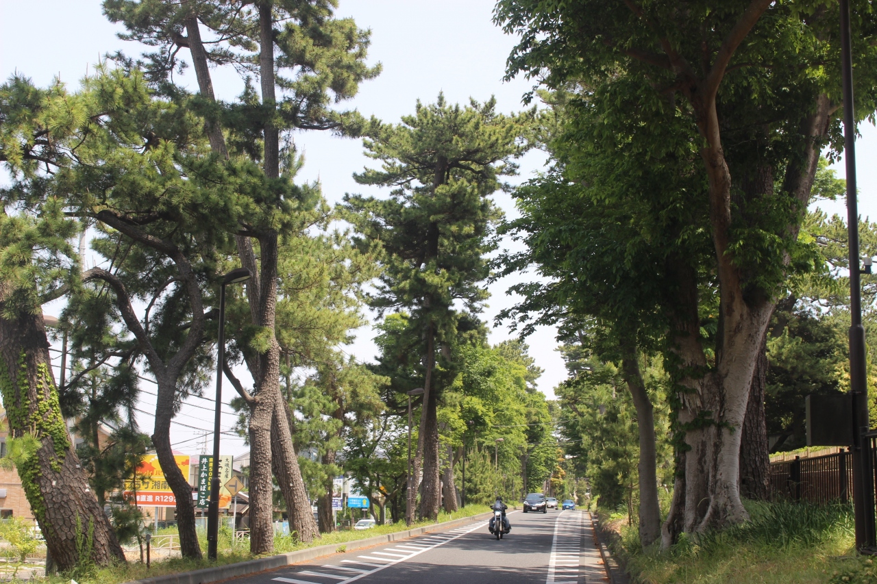 国道1号線・大磯駅周辺あたり 宿場町の面影はほとんどありません。松並木が残ります