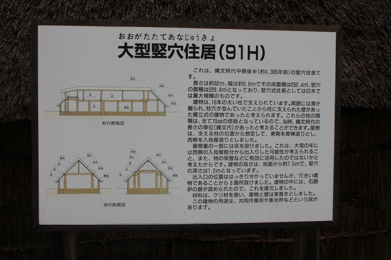 縄文時代にしては、集会場のような大きな家があったり、人も多く住んでいる集落になっていたり、なかなか見ごたえがあります。