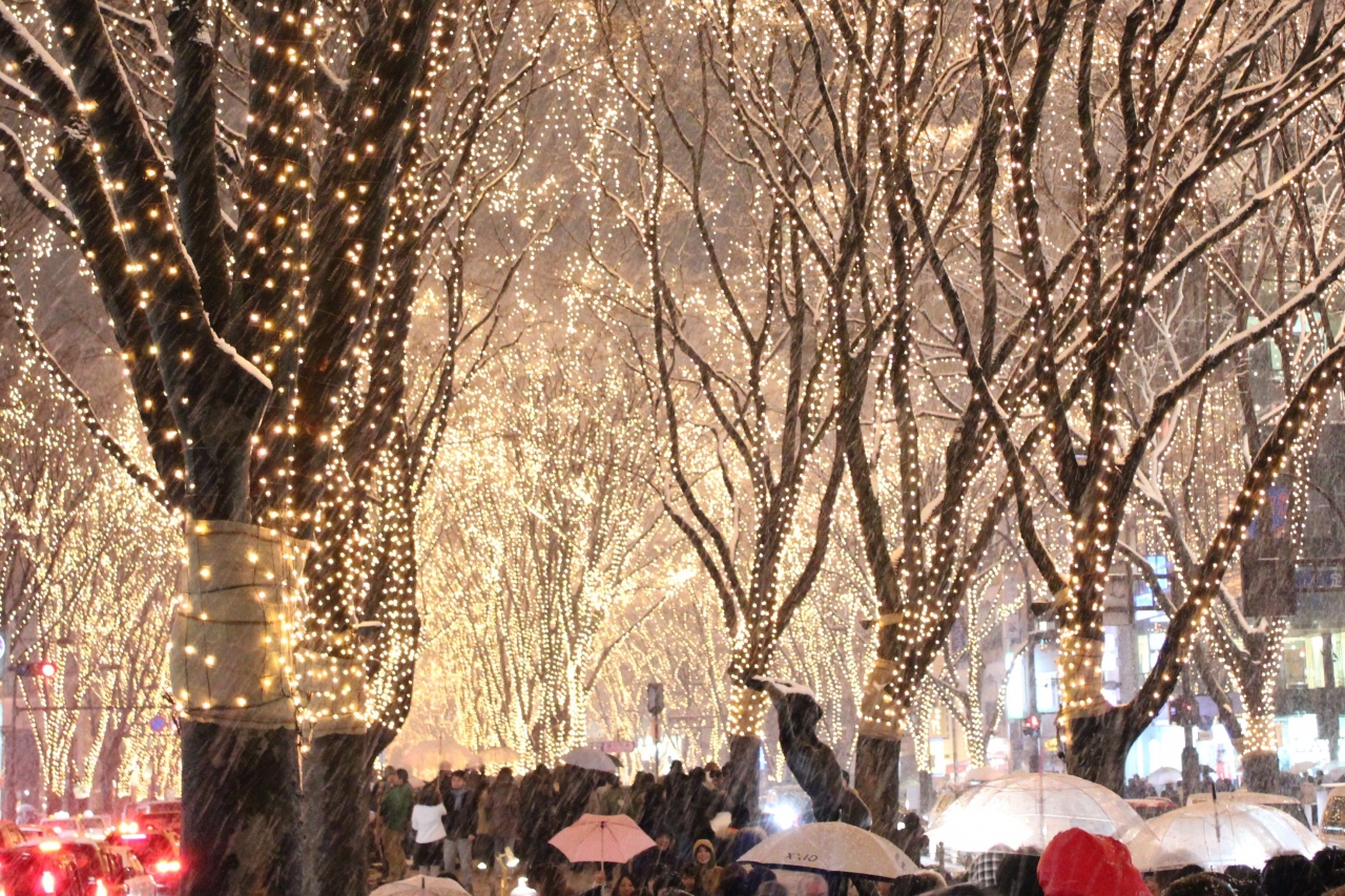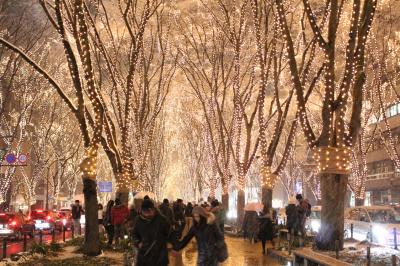 仙台の中心部、青葉通りの木々にまるで燃えるようなイルミネーションがされていました。