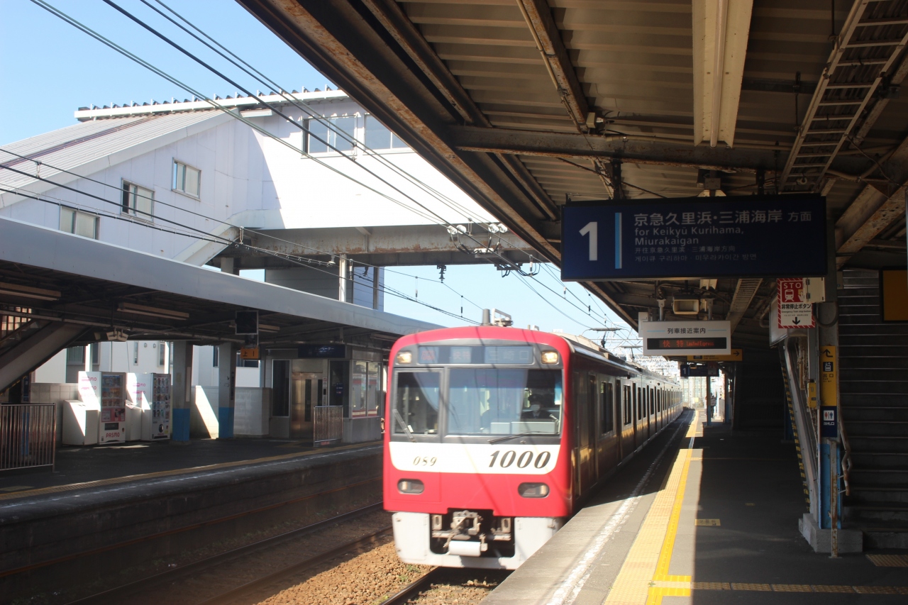 京浜急行の本線で、品川から三崎口まで快速急行が10分に1本走っています。