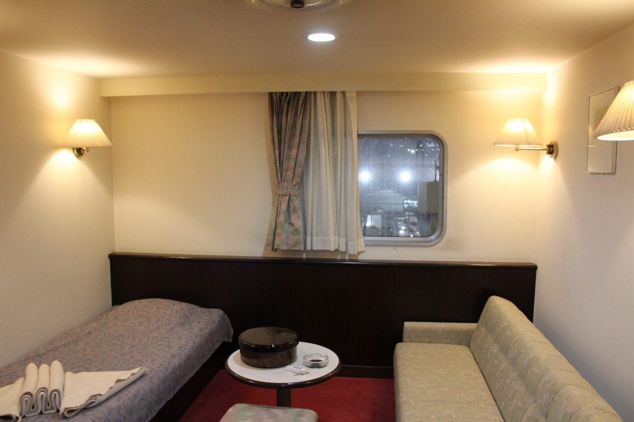 ベッドとソファーがあるくらいで古い個室ではありましたが、それでもさすがに1等船室、快適でした。