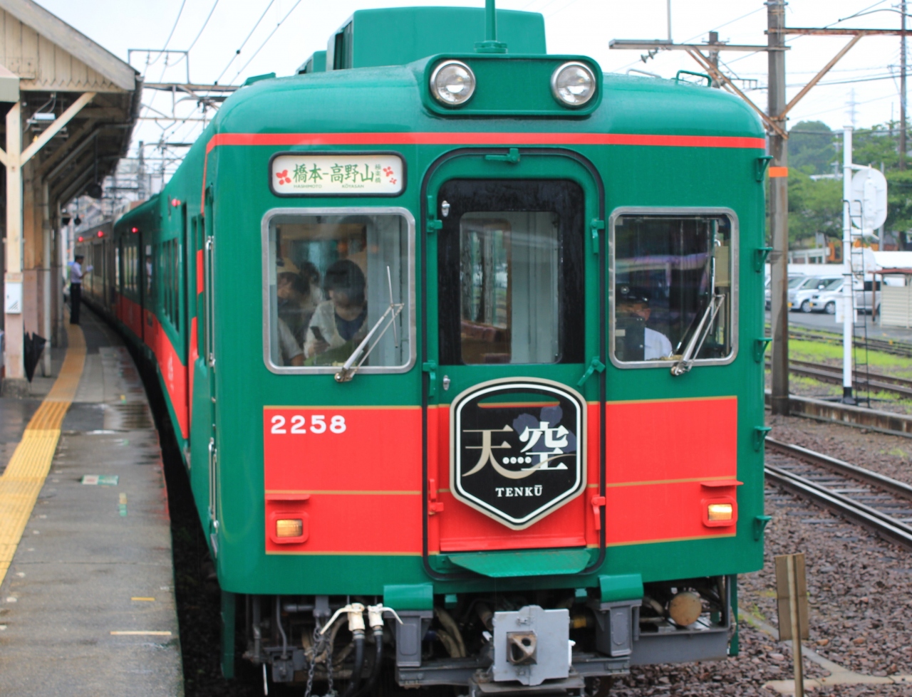 南海電車で高野山に行くには、大阪なんばから高野山まで直通特急「こうや」が一般的ですが、この電車も観光列車です。