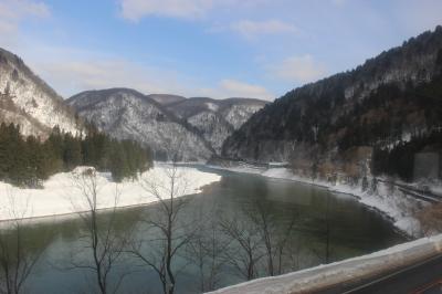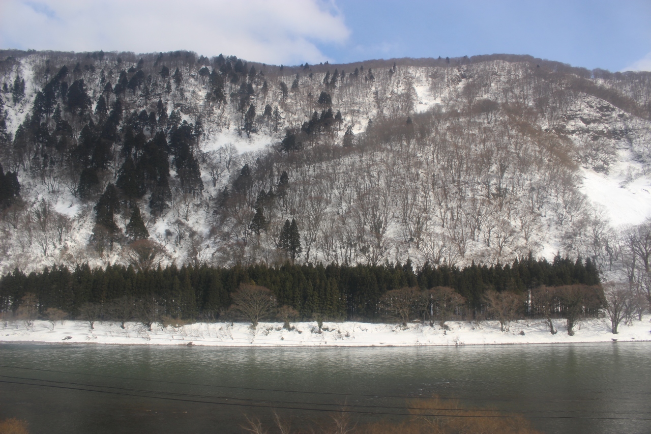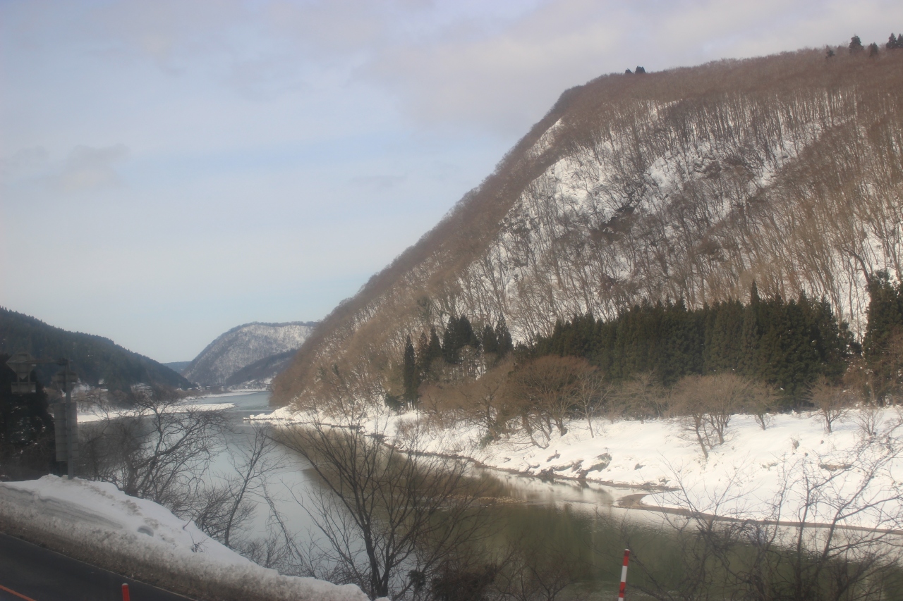 冬の最上川は雪化粧の山々と青い最上川で水墨画のようでした。- 旅行時期
