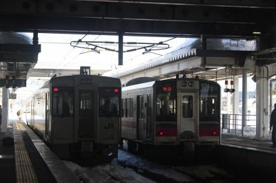 前回は夏に最上川川下りの時に乗りましたが、今回は真冬の陸羽西線に乗車しました。