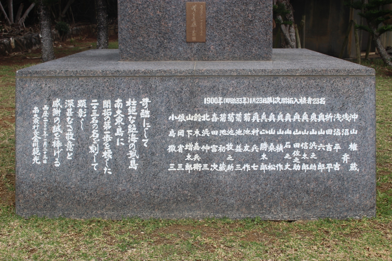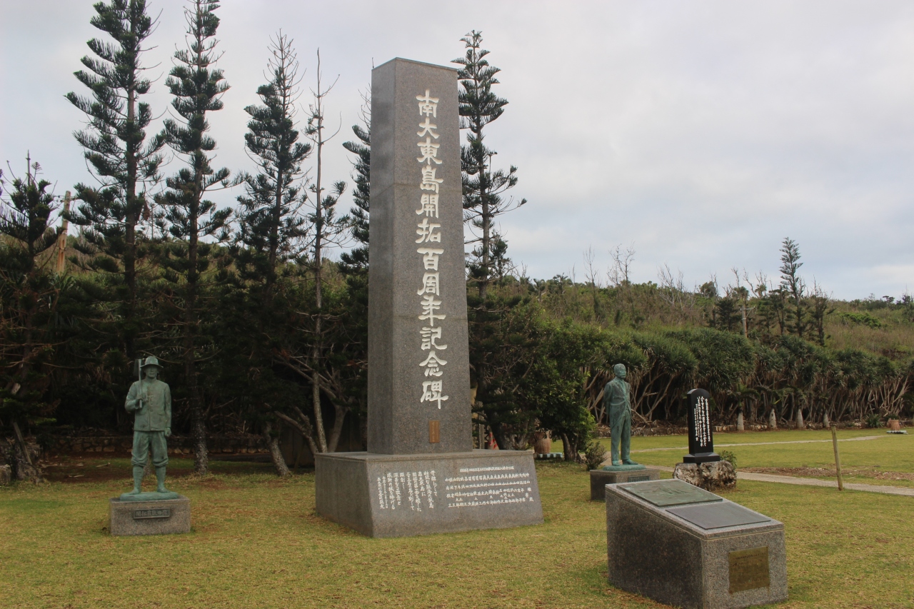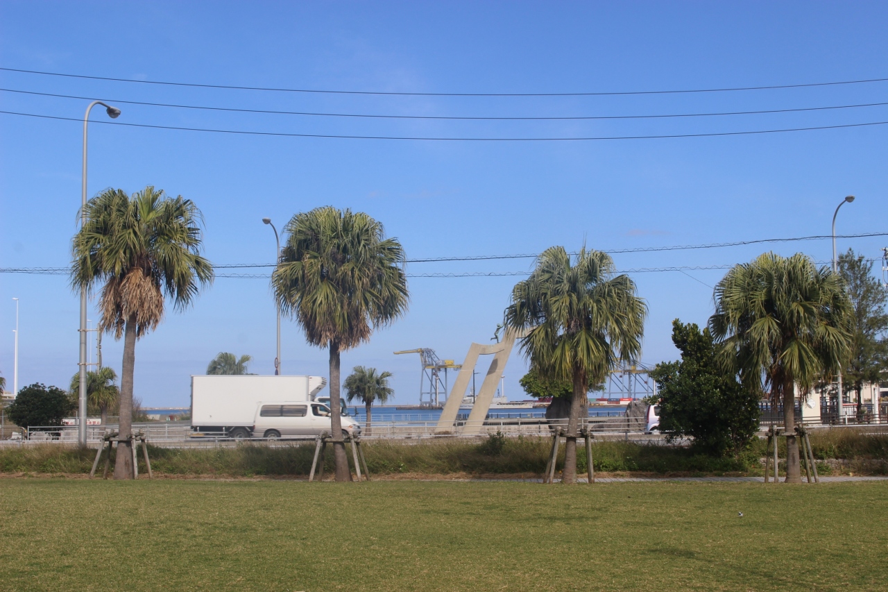 中心部にある文化センターからシュガー鉄道の廃線跡であるフロンティア・ロードをレンタサイクルで走ってくると、終点の西港の手前の広場に立派な記念碑がありました。
