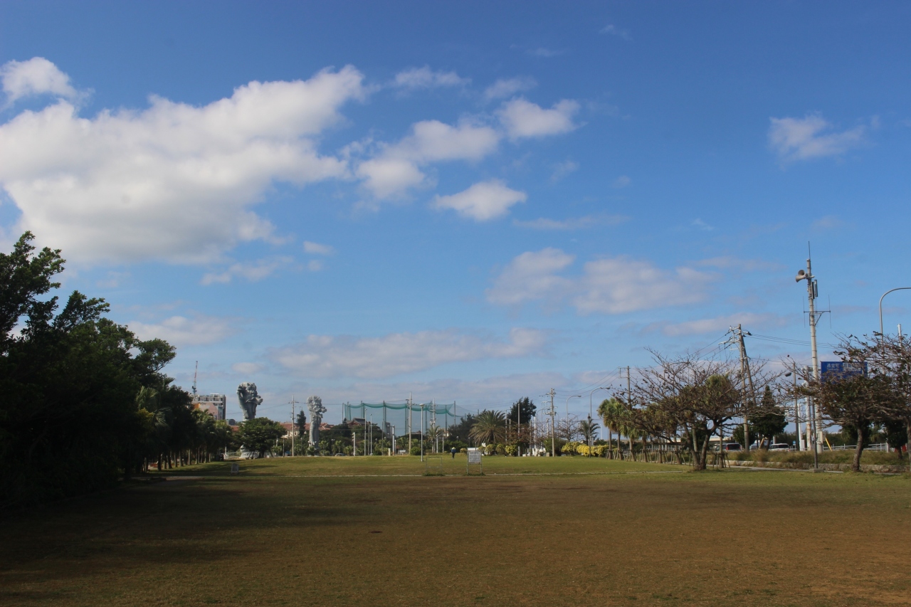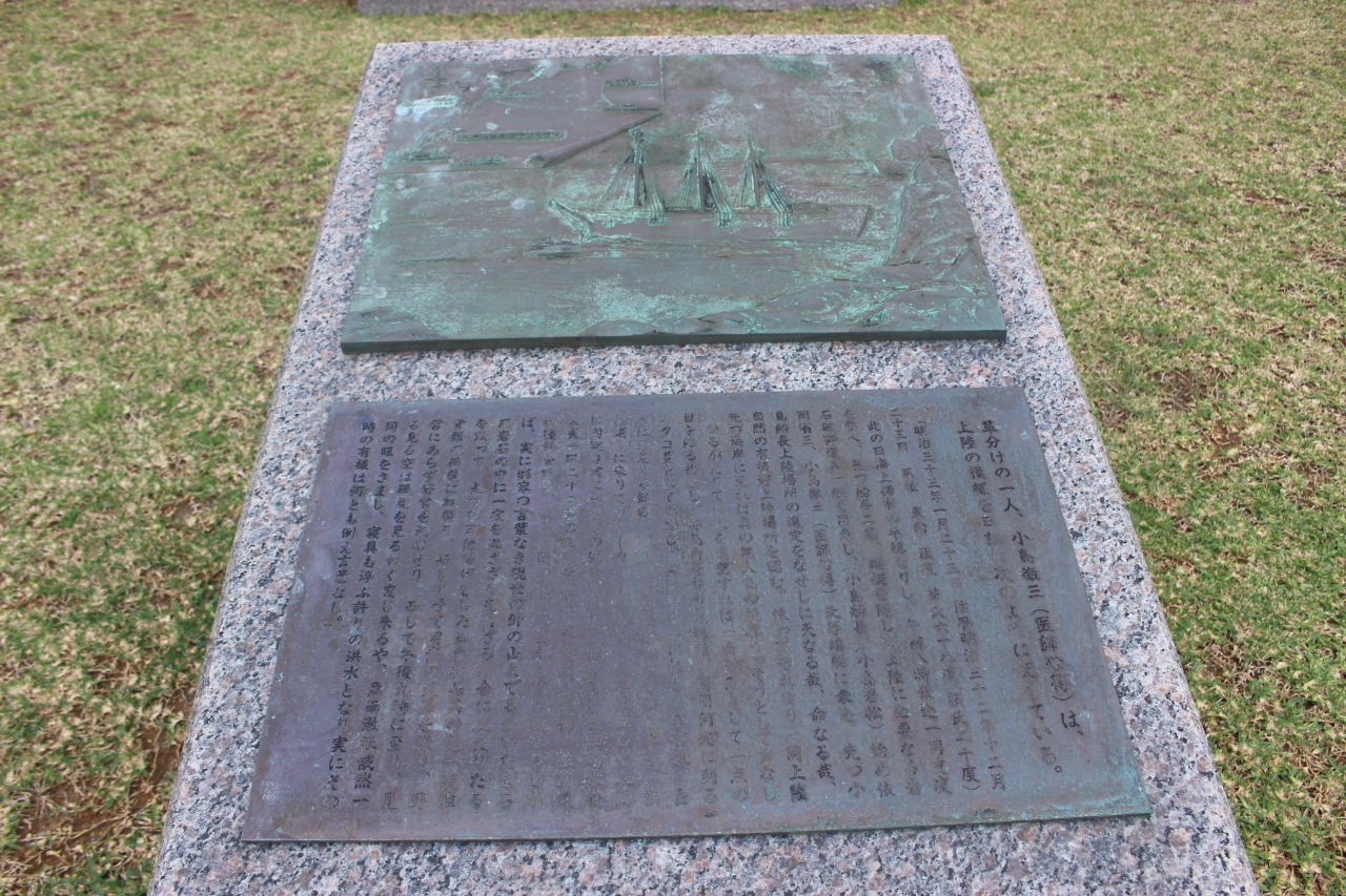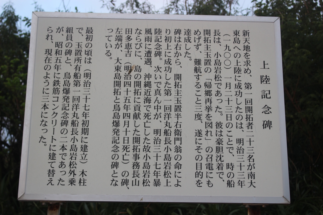 中心部にある文化センターからシュガー鉄道の廃線跡であるフロンティア・ロードをレンタサイクルで走ってくると、終点の西港の手前の広場に立派な記念碑がありました。