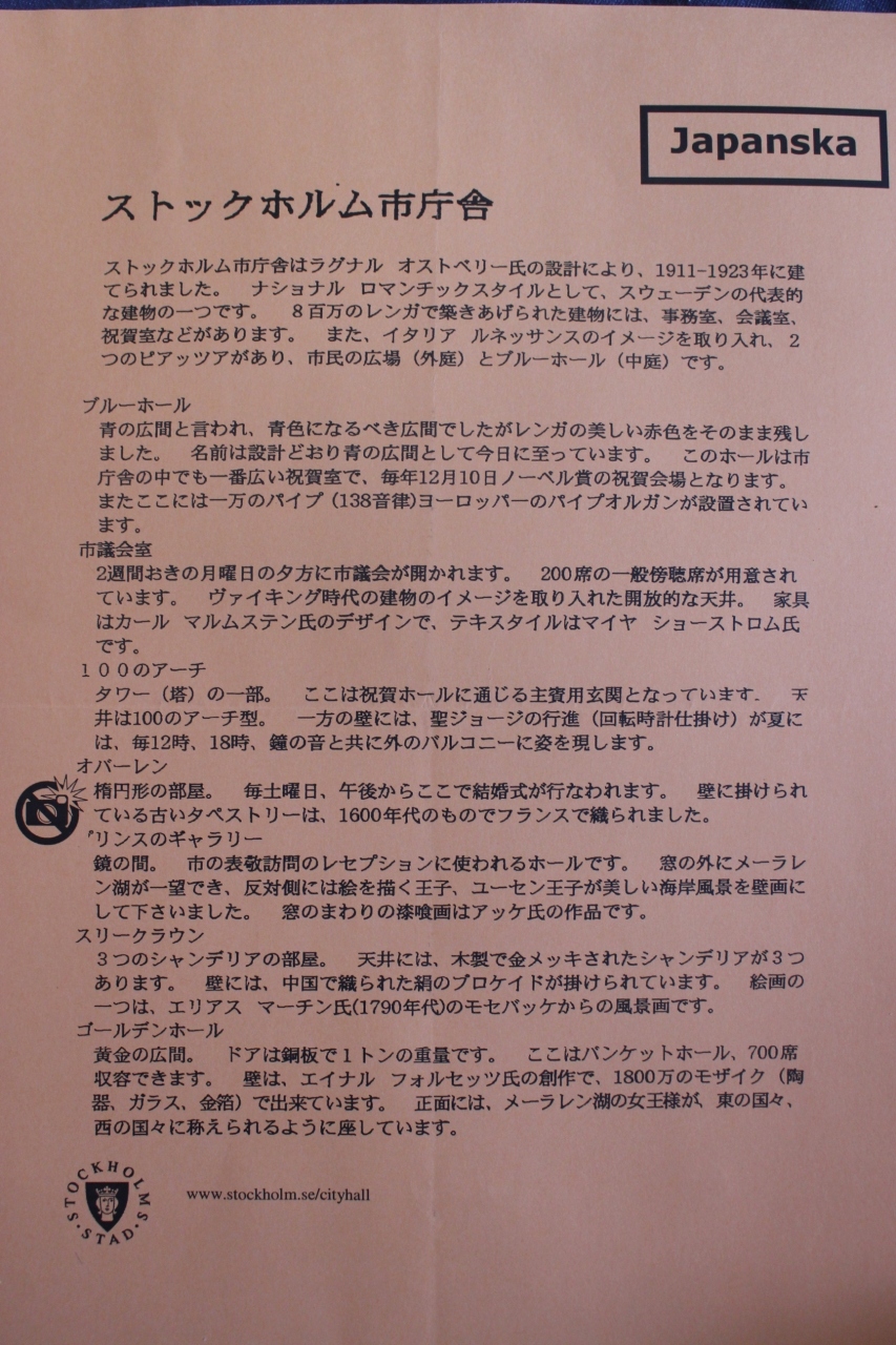 ストックホルムのいわば市役所ですが、観光地としても外せないスポットの1つです。