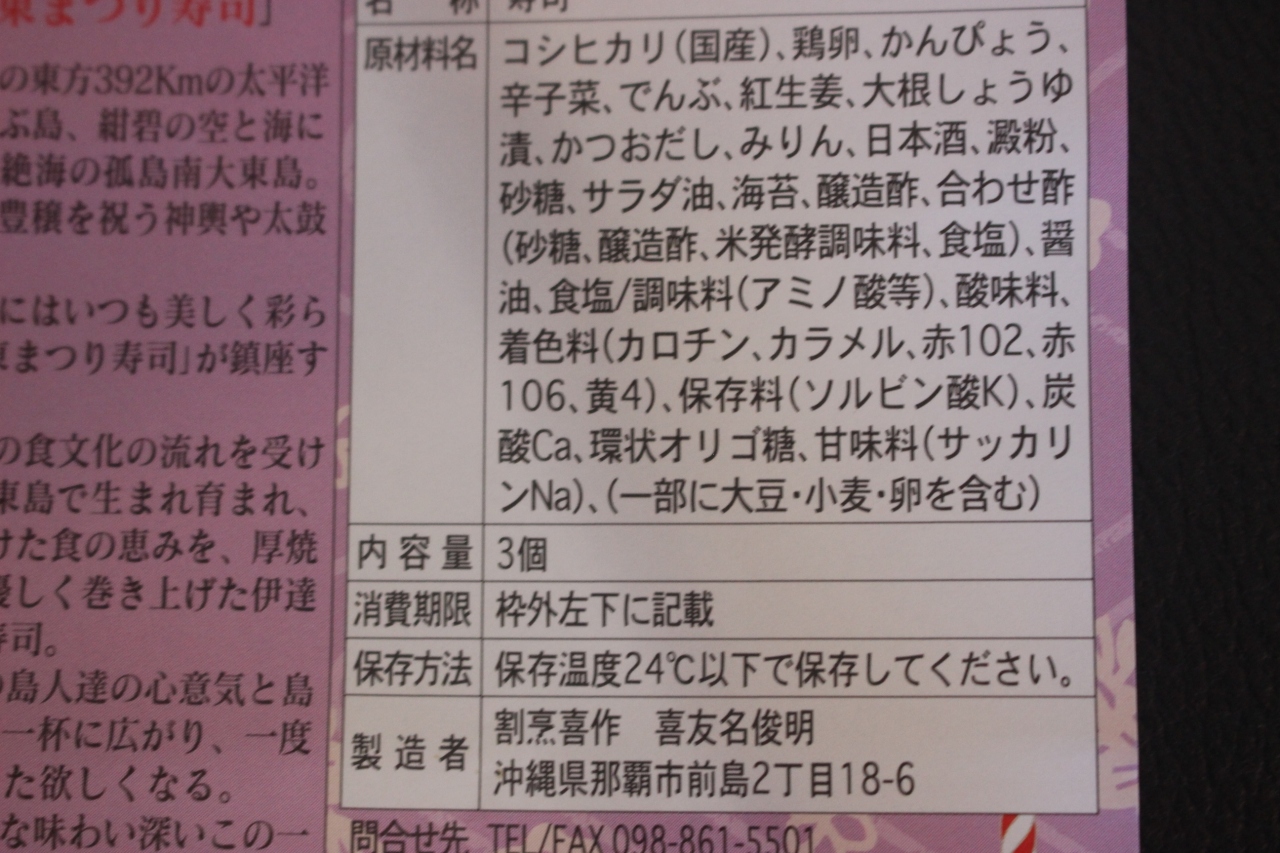 「空弁」として「絶海の孤島」として有名な大東諸島の名物である「大東寿司」「大東まつり寿司」を購入しました。