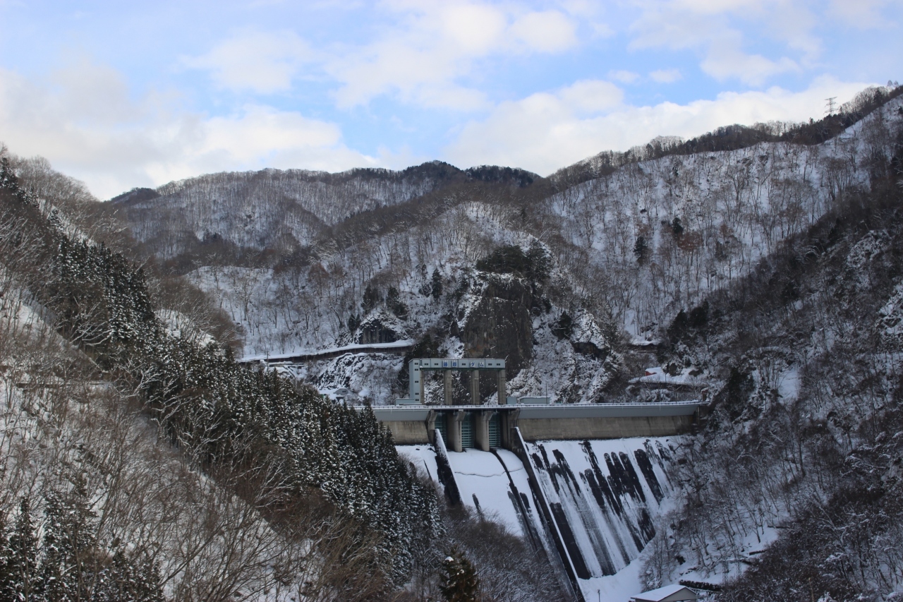 JR水上駅から宝川温泉方面行のバスに乗ると、やがて藤原ダムが見えてきます。
