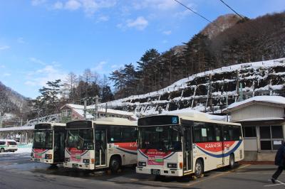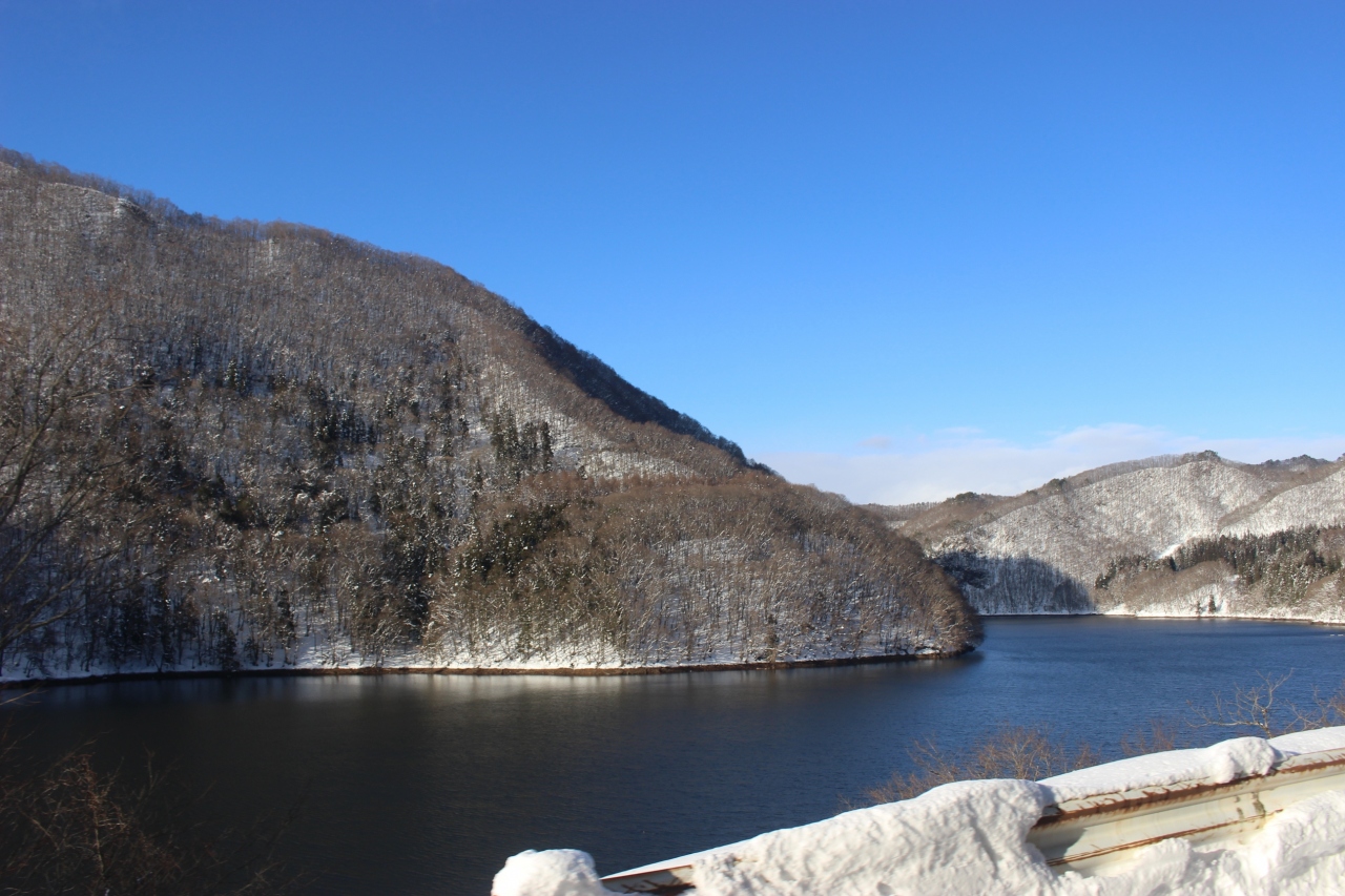 その後バスは藤原湖沿いの道をずっと走るので、車窓からよく見えます。