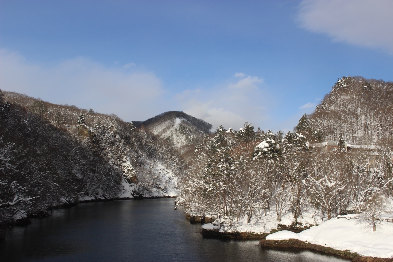 冬は雪化粧している山々の間の湖になるので、とても神秘的な雰囲気でした。