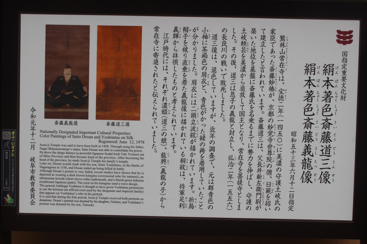 斎藤道三と斎藤義龍の肖像画があるお寺です。