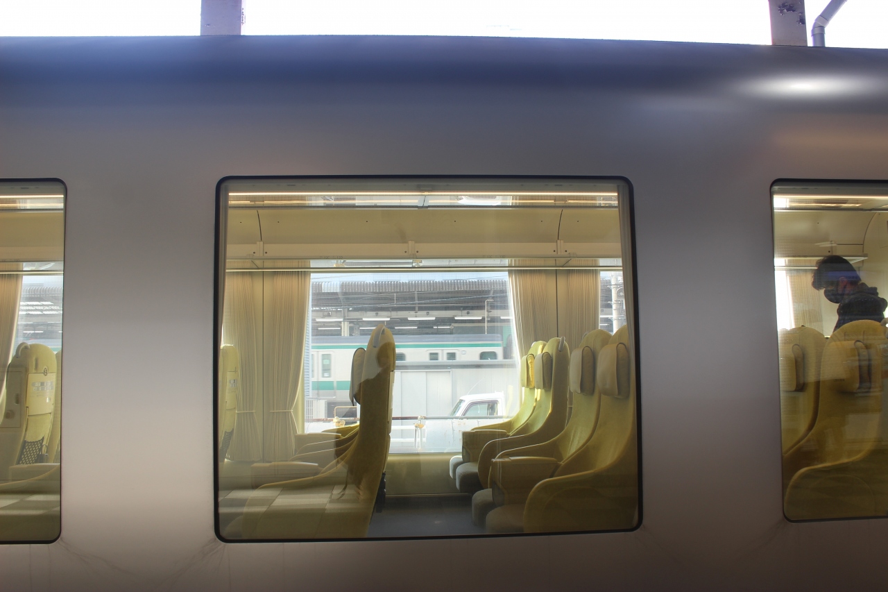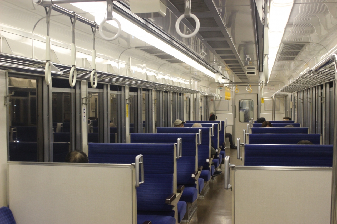 シートは鉄道のシートというより、室内のソファーのイメージ。