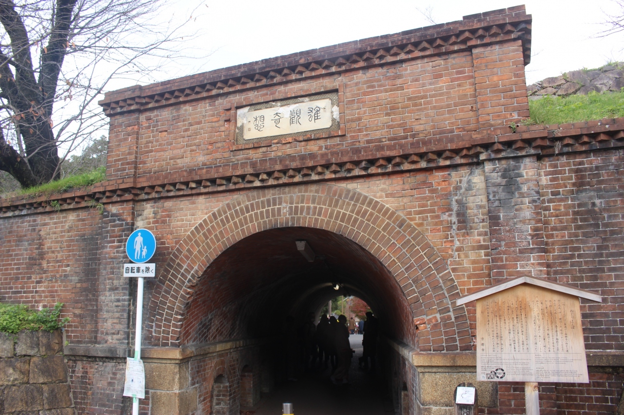 歩行者用のトンネルになっていますが、レンガ造りのレトロなトンネルです。