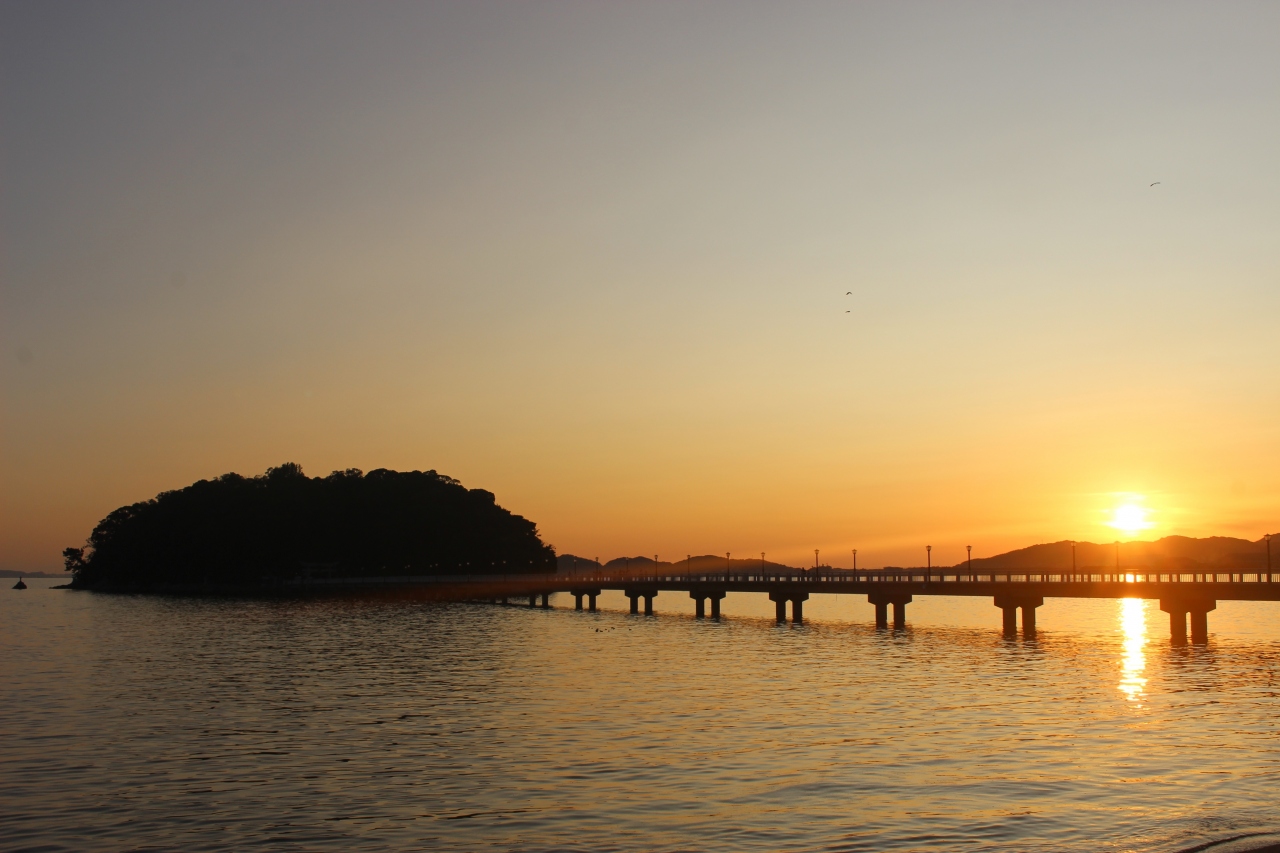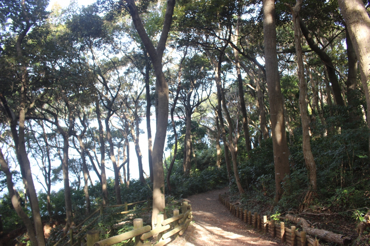 神社から遊歩道をまわって海沿いに橋の入口まで一周しました- 旅行時期