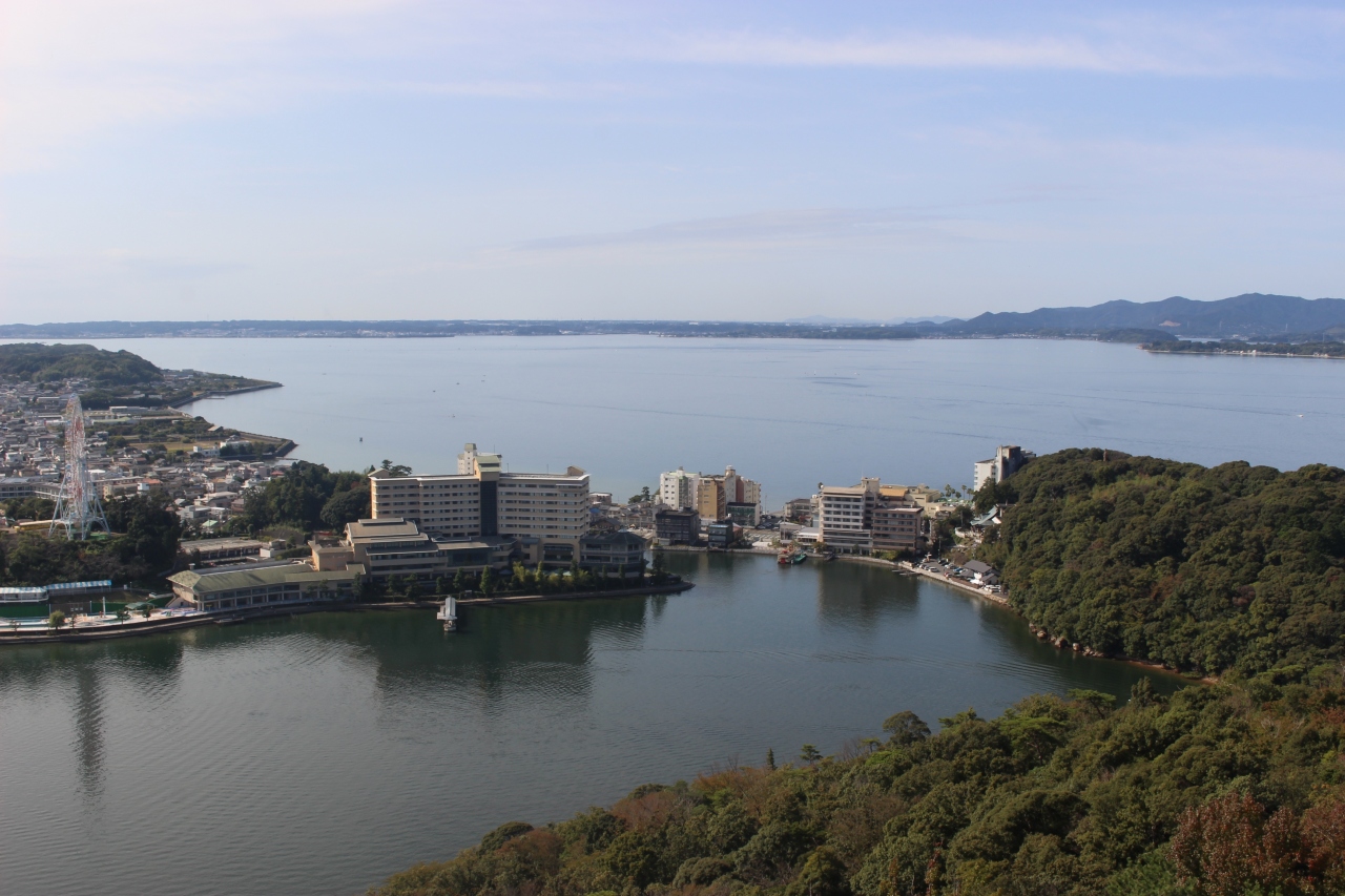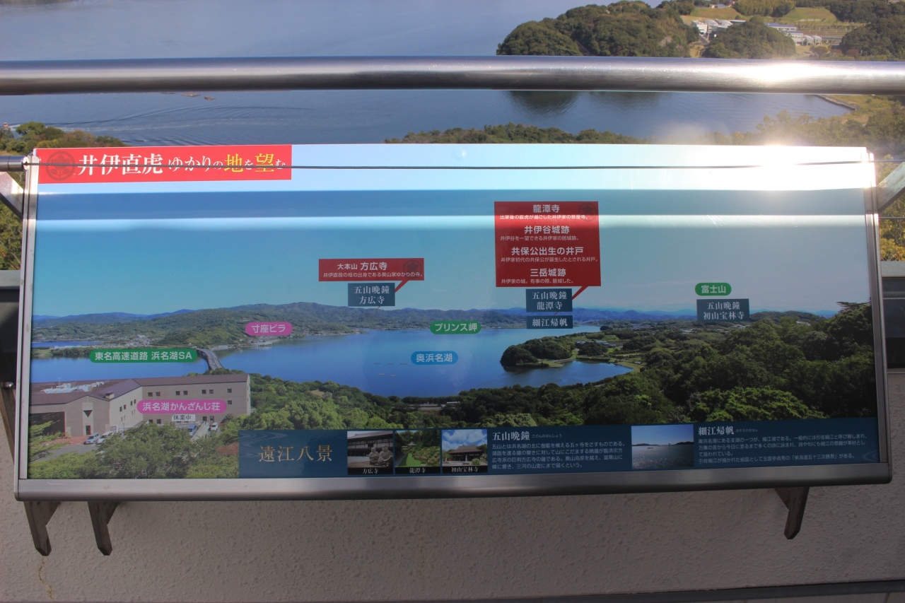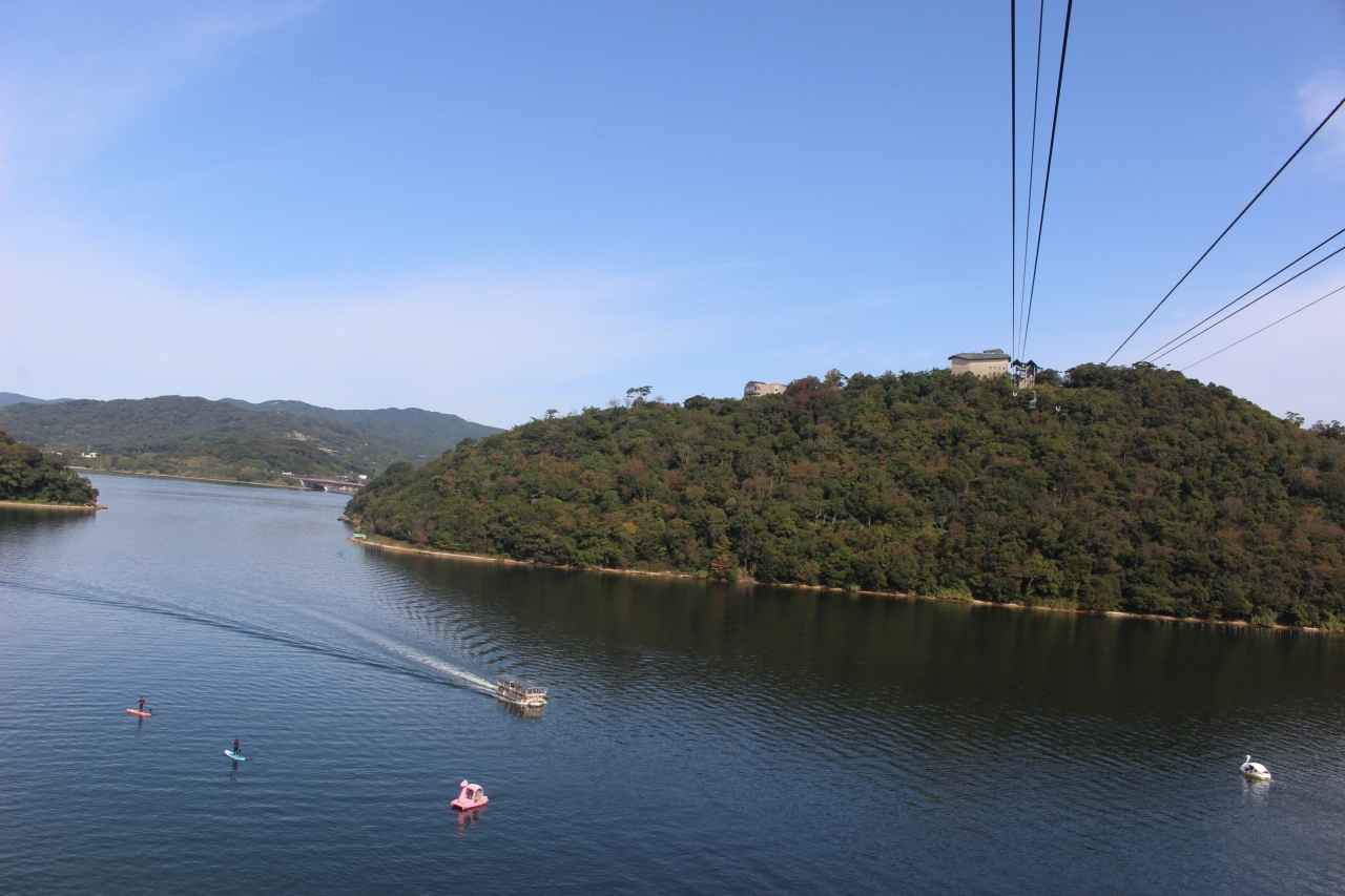 ここからロープウェイに乗ると、浜名湖の湖面の上を横断して大草山の展望台まで行けます。