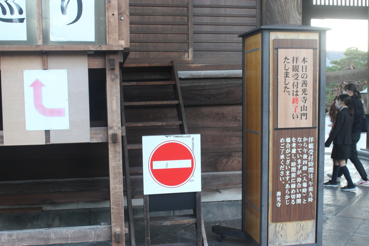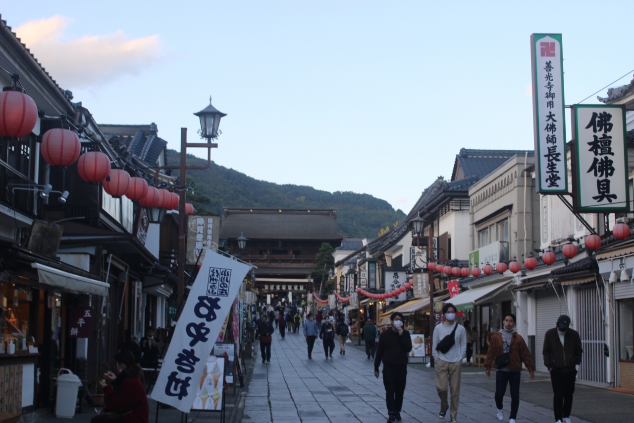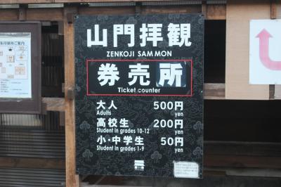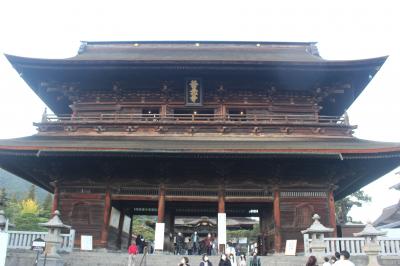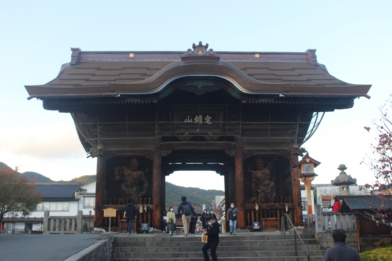 バス停から善光寺の仁王門、門前町を歩いていくと、実に立派な門につきます。