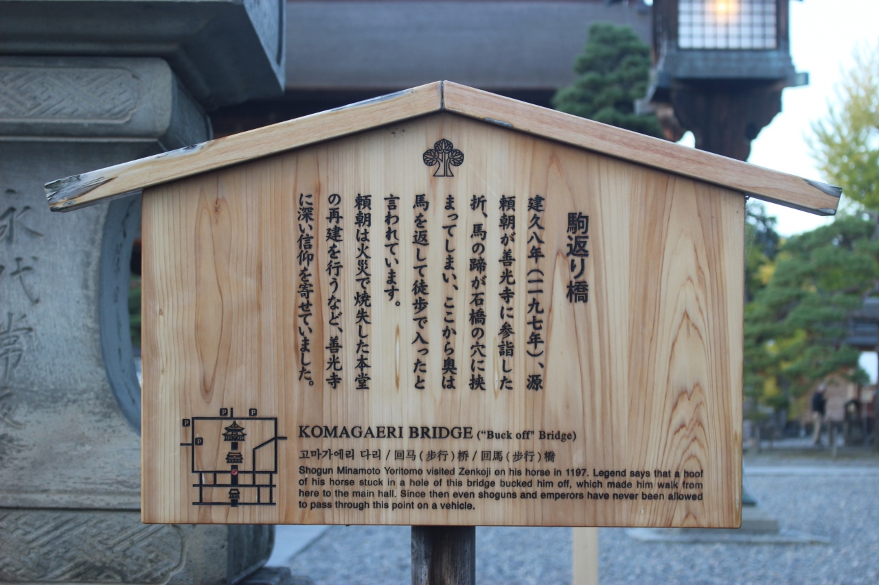 善光寺仁王門を抜けて山門の手前にある石の橋です。