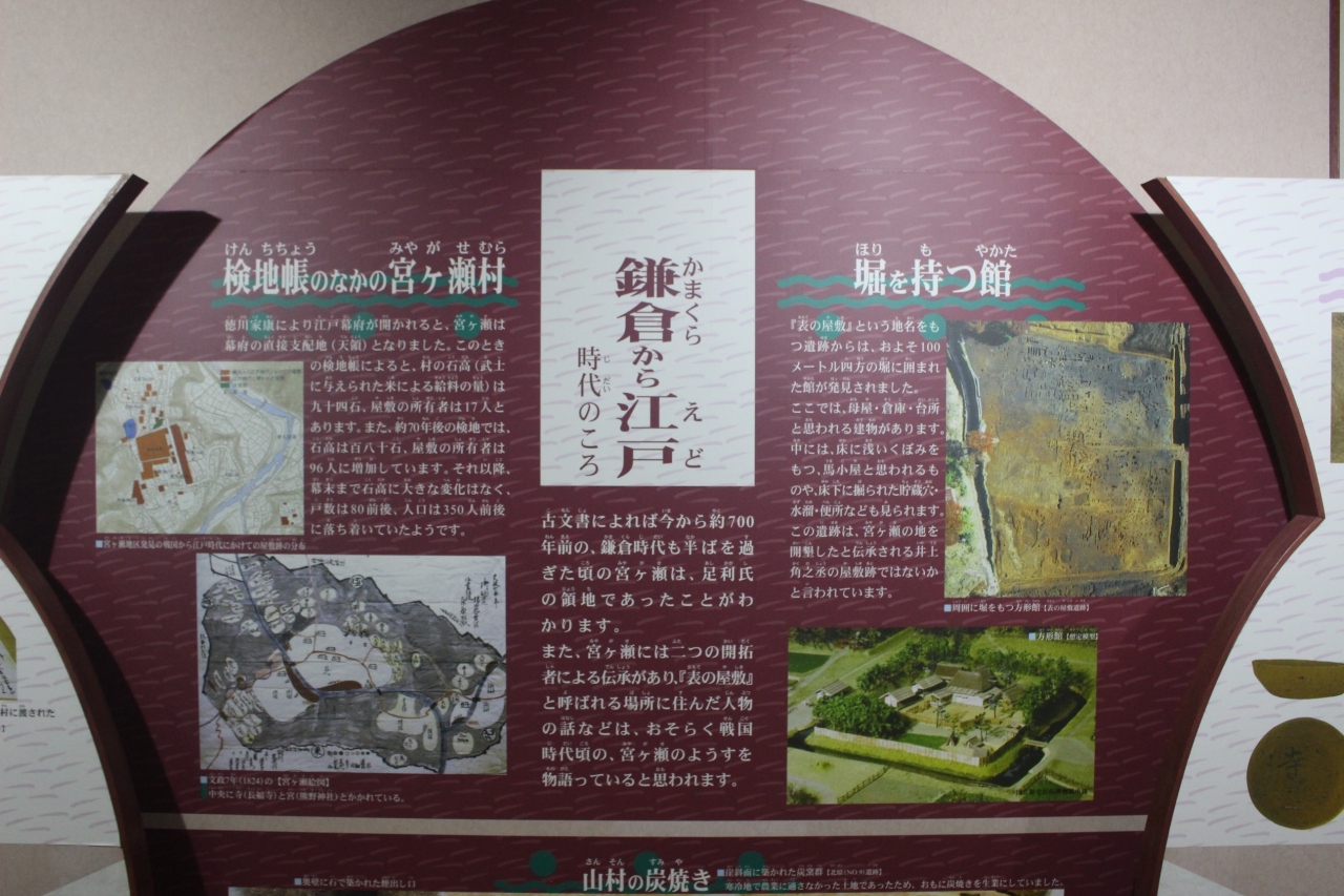 現在は宮ヶ瀬湖に沈んでいる、昔から人が住み、歴史のあった宮ケ瀬の集落についての資料が展示されています。