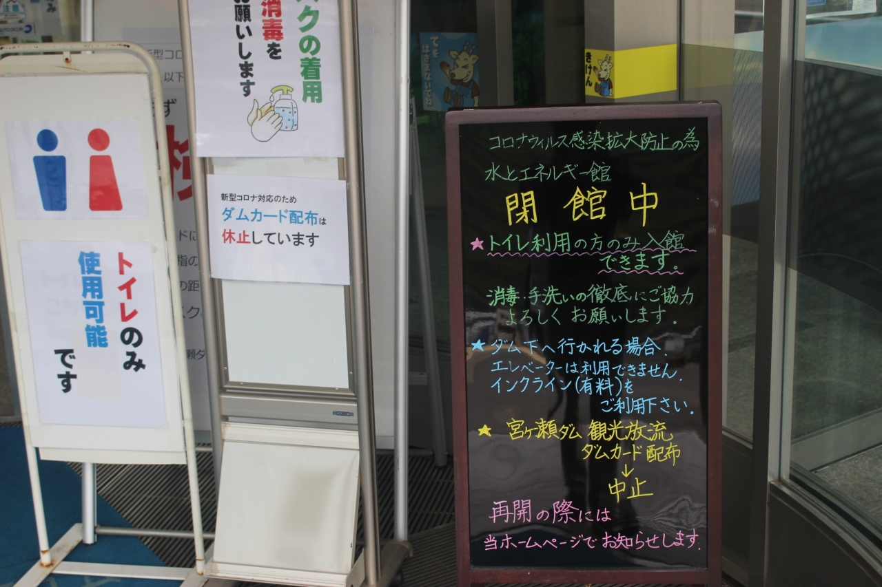 宮ヶ瀬ダムについての展示がされていると思って、期待して入館したのですが、展示室などはコロナで閉鎖されて、使えるのはトイレのみでした。