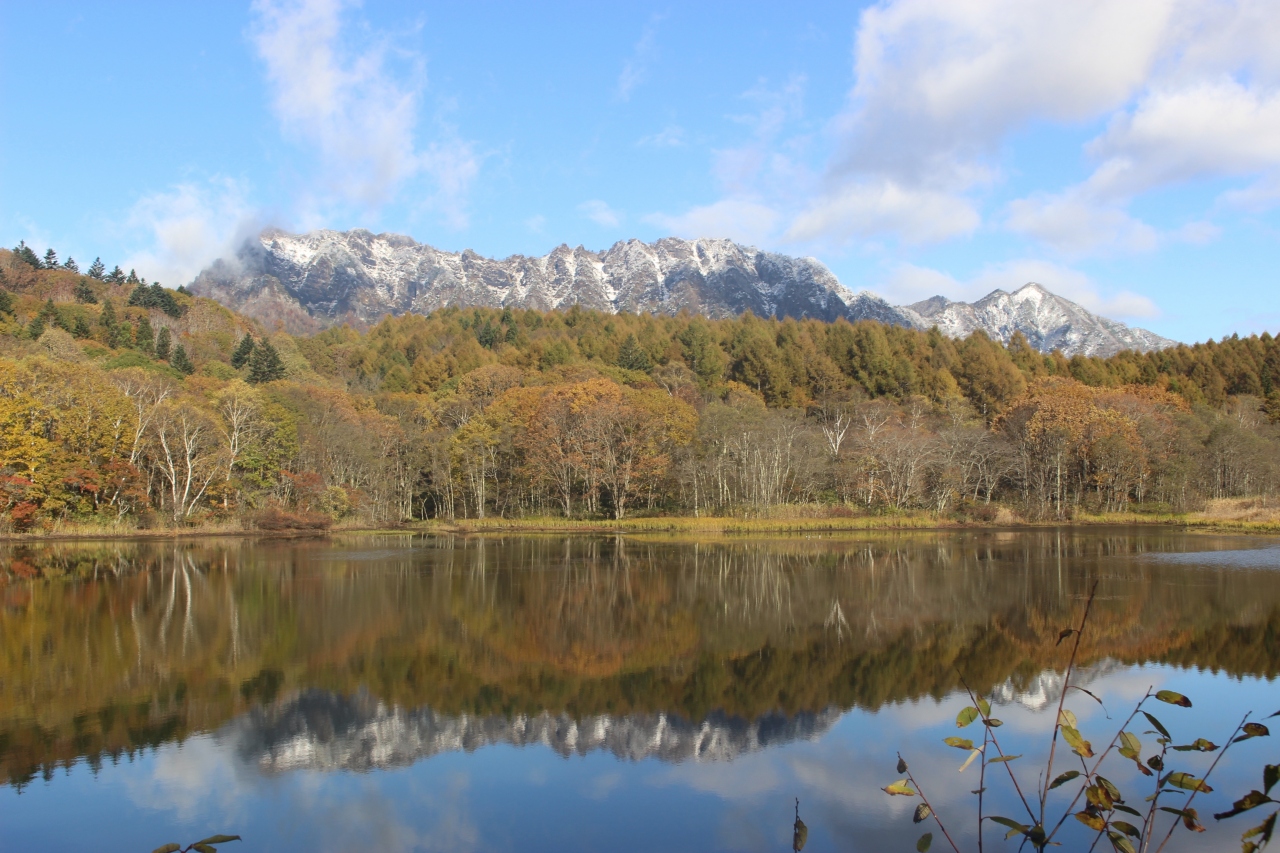それでも太陽が出てくると雪化粧した西岳や戸隠山が湖面に映っていました。- 旅行時期