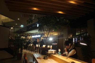 1階のピザ&カフェの店はラウンジ代わりに自由に使え、ソフトドリンクやコーヒーなどは飲み放題です。