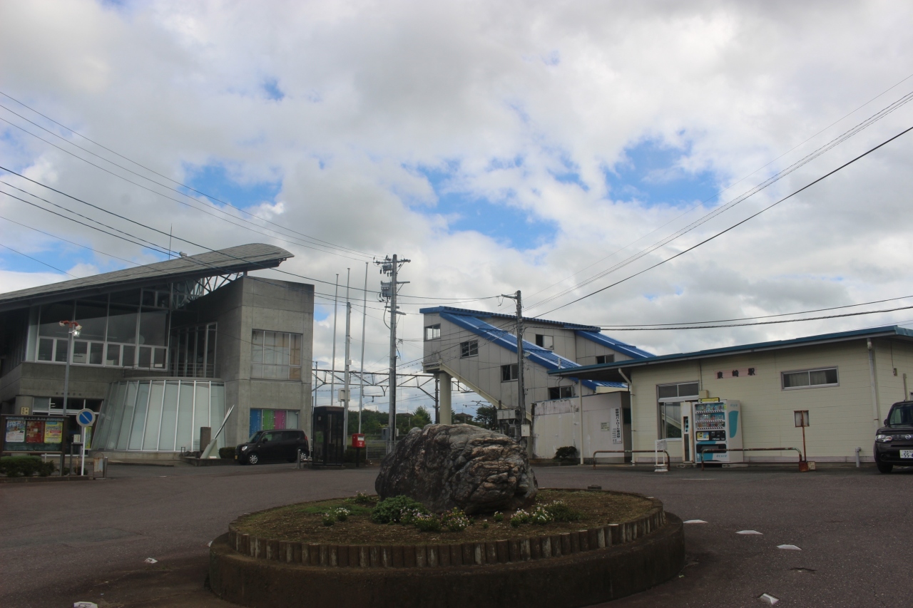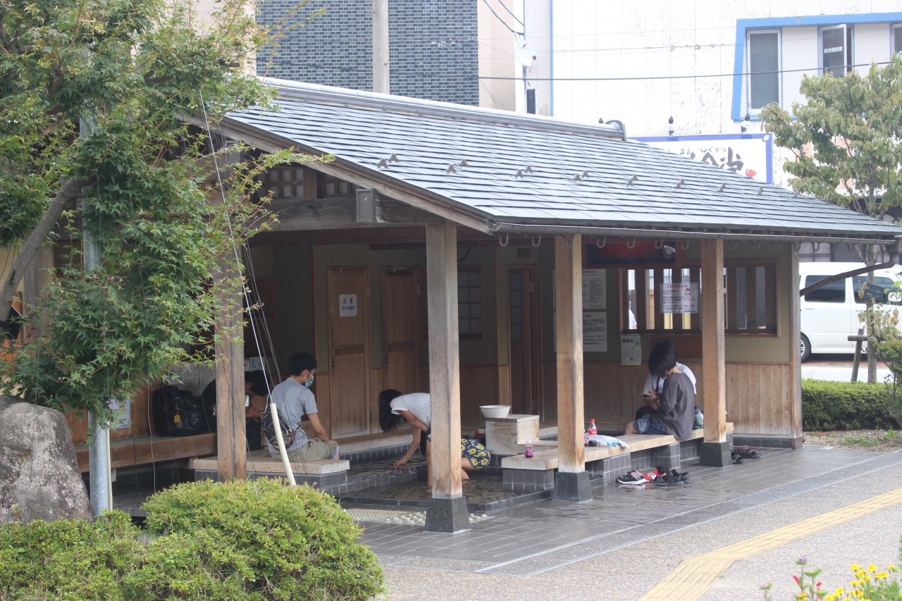 JR磐越西線の駅を出ると、駅前広場に足湯があります。
