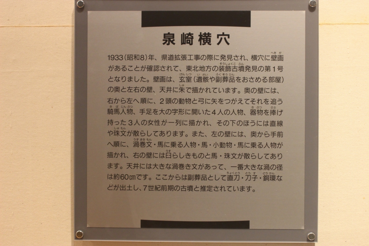 JR泉崎駅の横、泉崎横穴の壁画のレプリカや相撲取りの埴輪がありました。